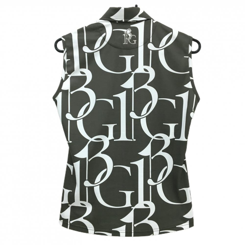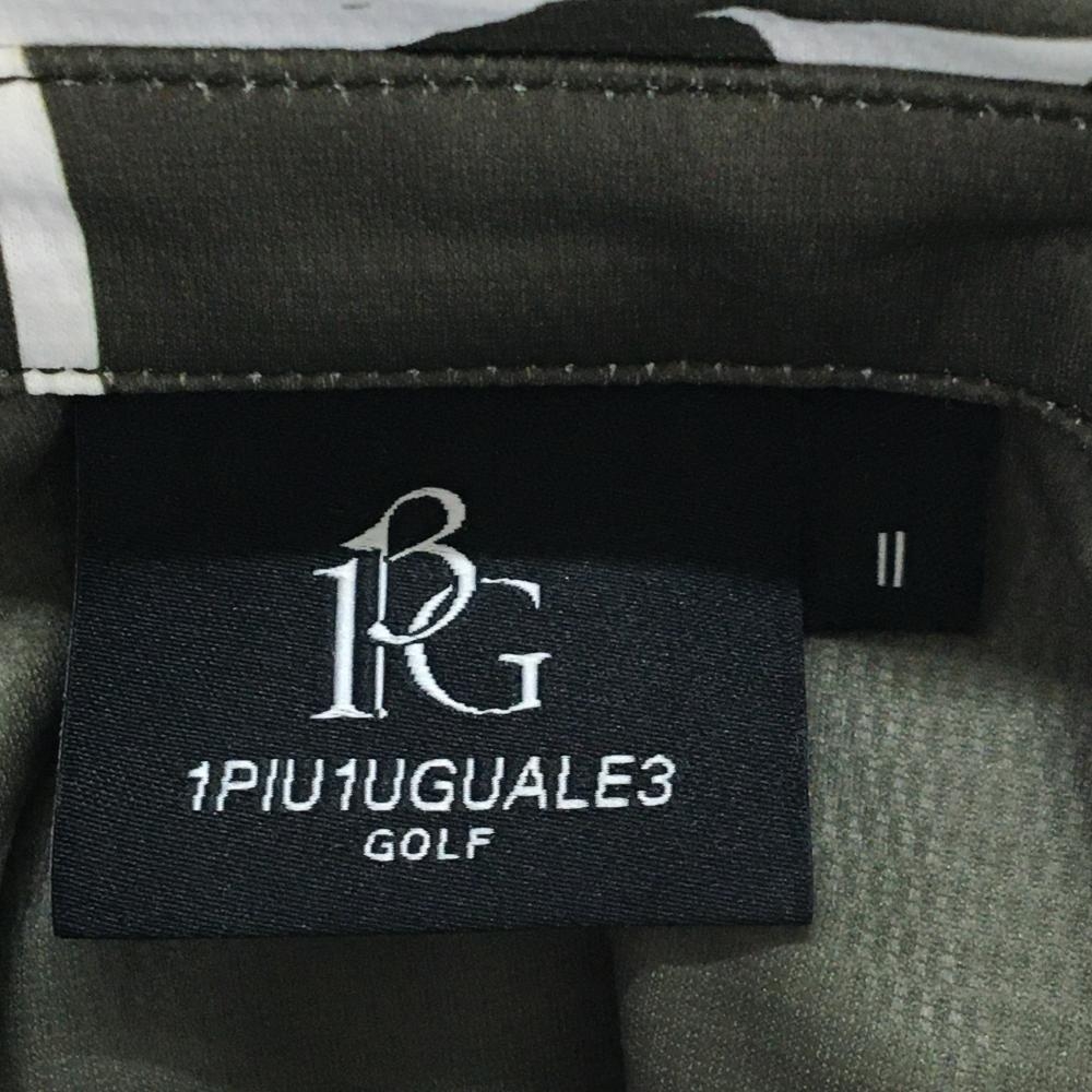 【超美品】ウノピゥウノウグァーレトレゴルフ ノースリーブポロシャツ カーキ×白 ロゴ総柄 レディース II(M) ゴルフウェア 1PIU1UGUALE3