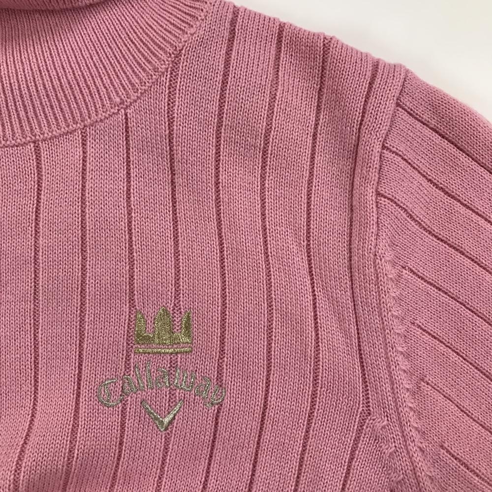 【超美品】キャロウェイ タートルネックセーター ピンク リブ編み ウール混 ニット レディース M ゴルフウェア Callaway