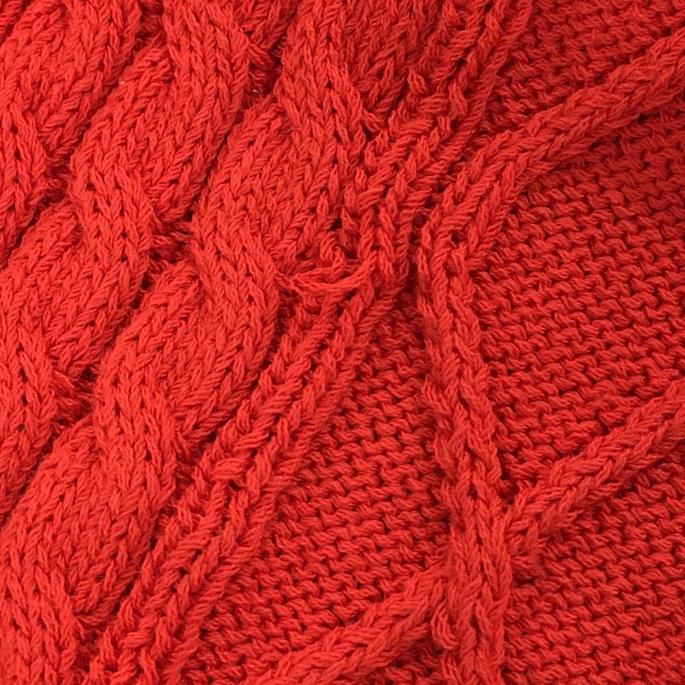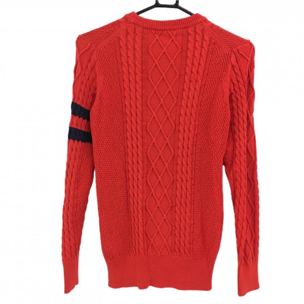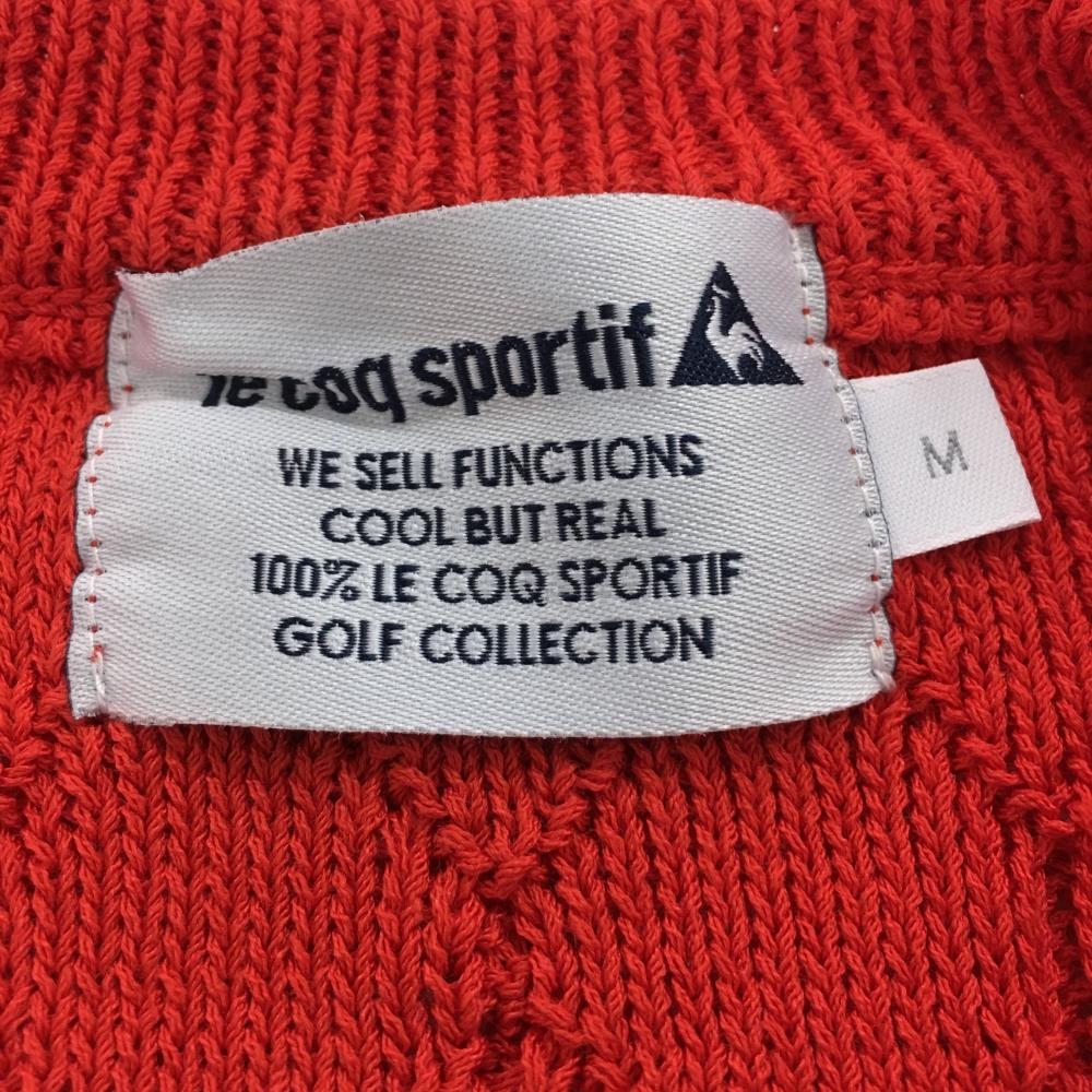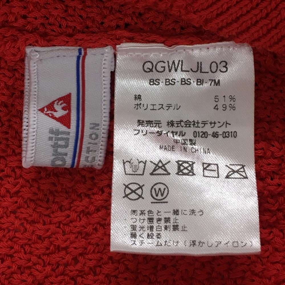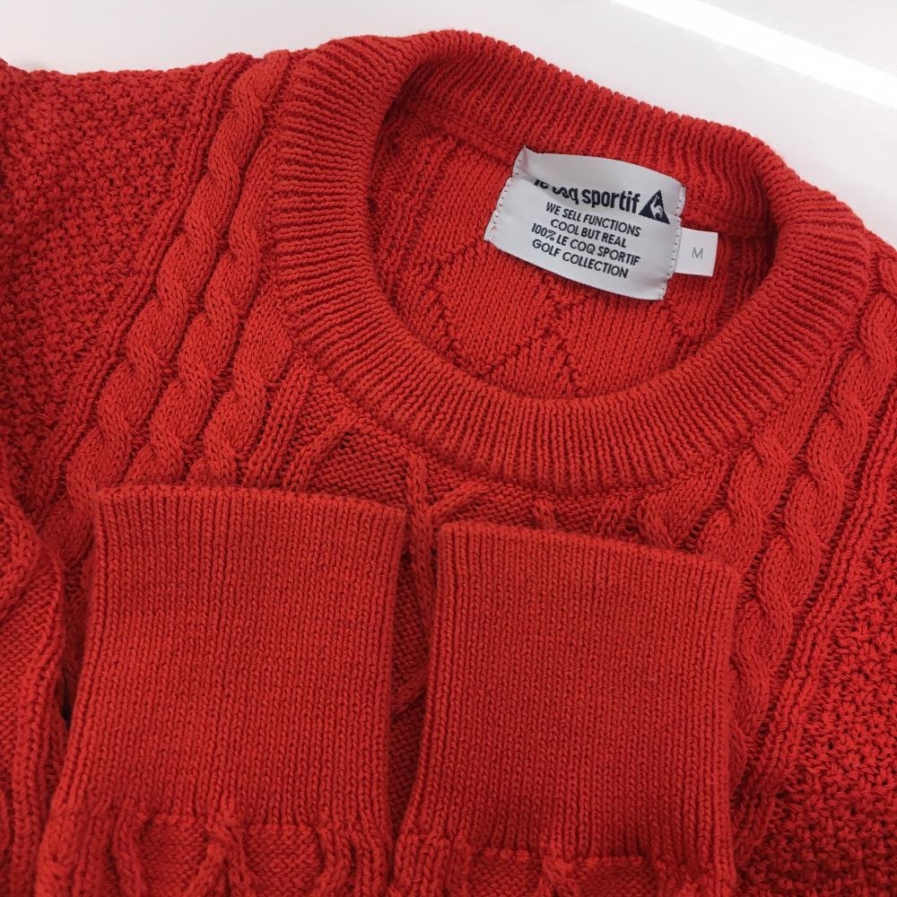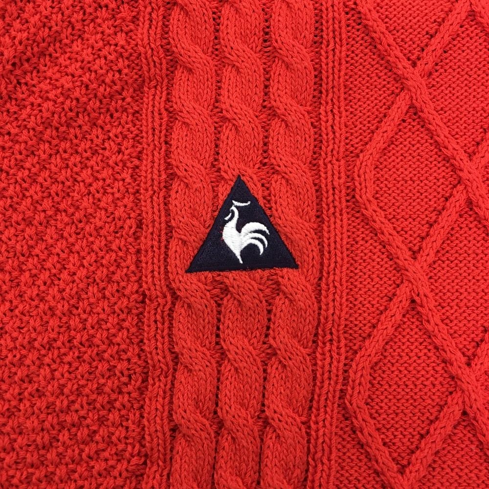 【美品】ルコックゴルフ セーター レッド系 ケーブル編み コットン混 ニット レディース M ゴルフウェア le coq sportif