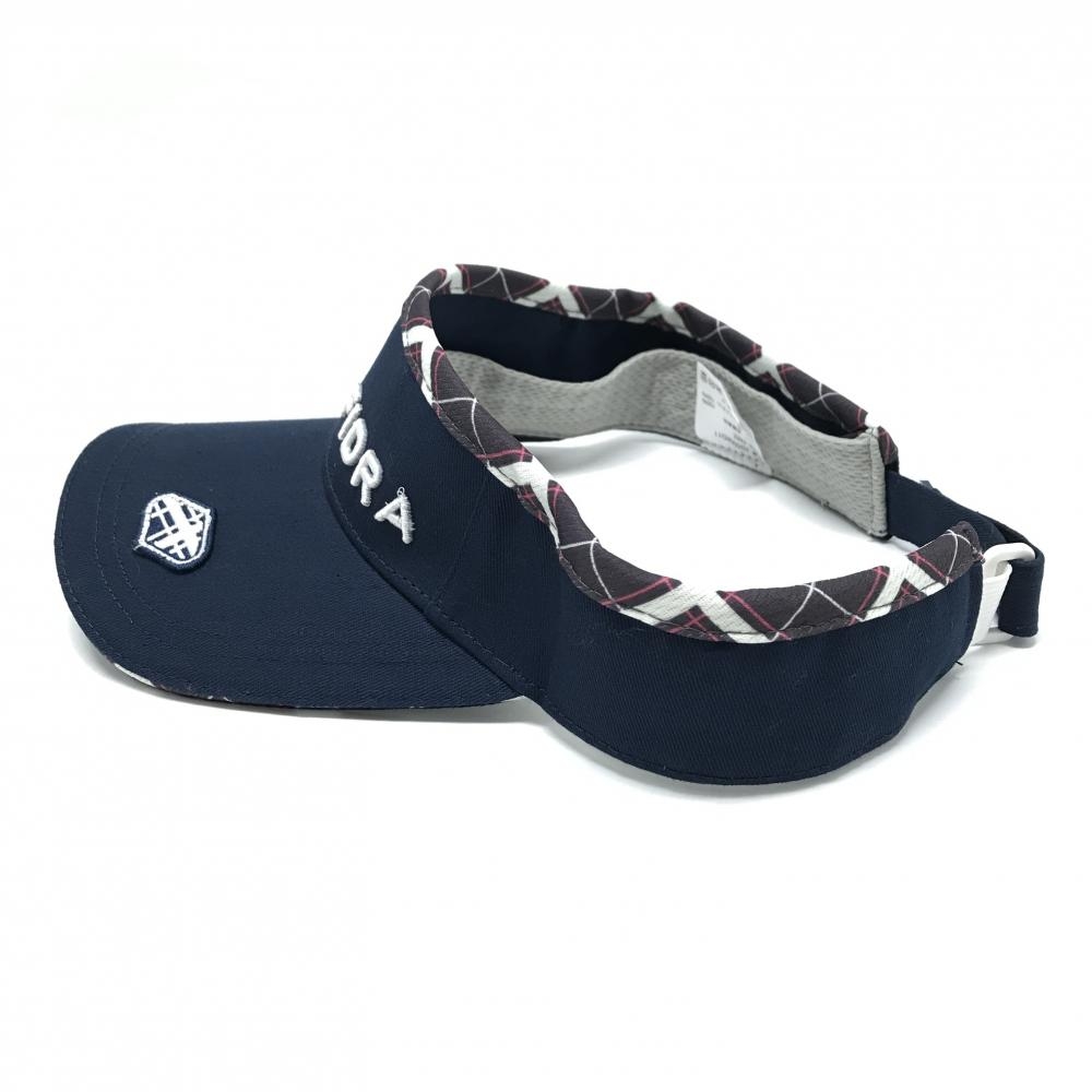 【美品】フィドラ サンバイザー ネイビー×白 立体ロゴ FREE ゴルフウェア FIDRA