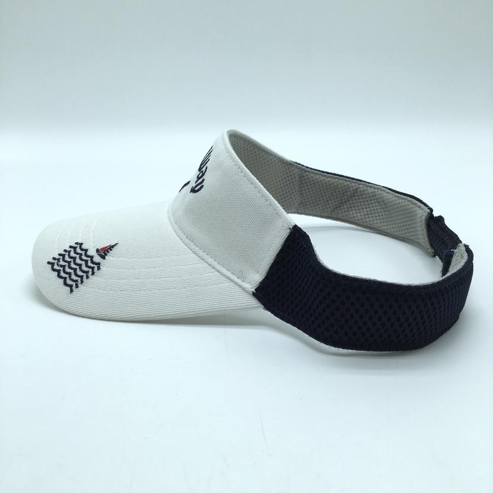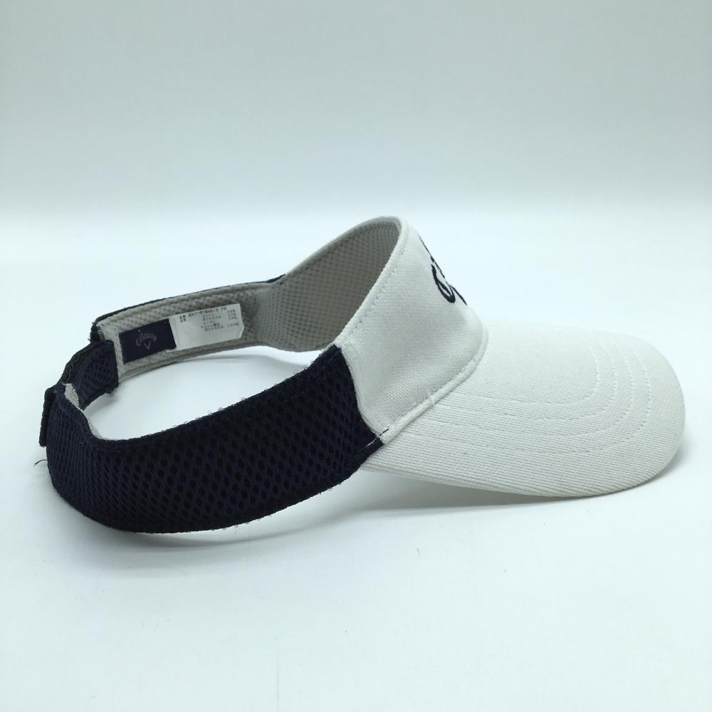 【美品】キャロウェイ サンバイザー 白×ネイビー ロゴ 汗取りパッド付 FR ゴルフウェア Callaway