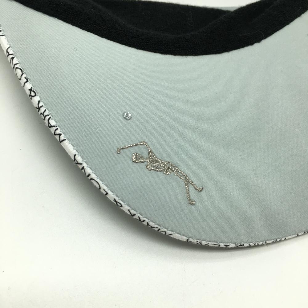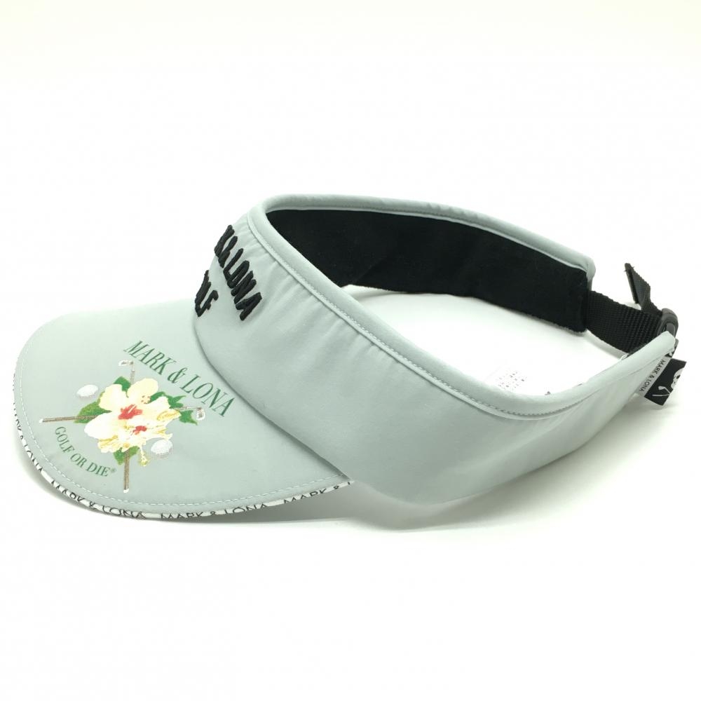 【超美品】マークアンドロナ サンバイザー ライトグレー つば縁ロゴ 花プリント ゴルフウェア MARK&LONA