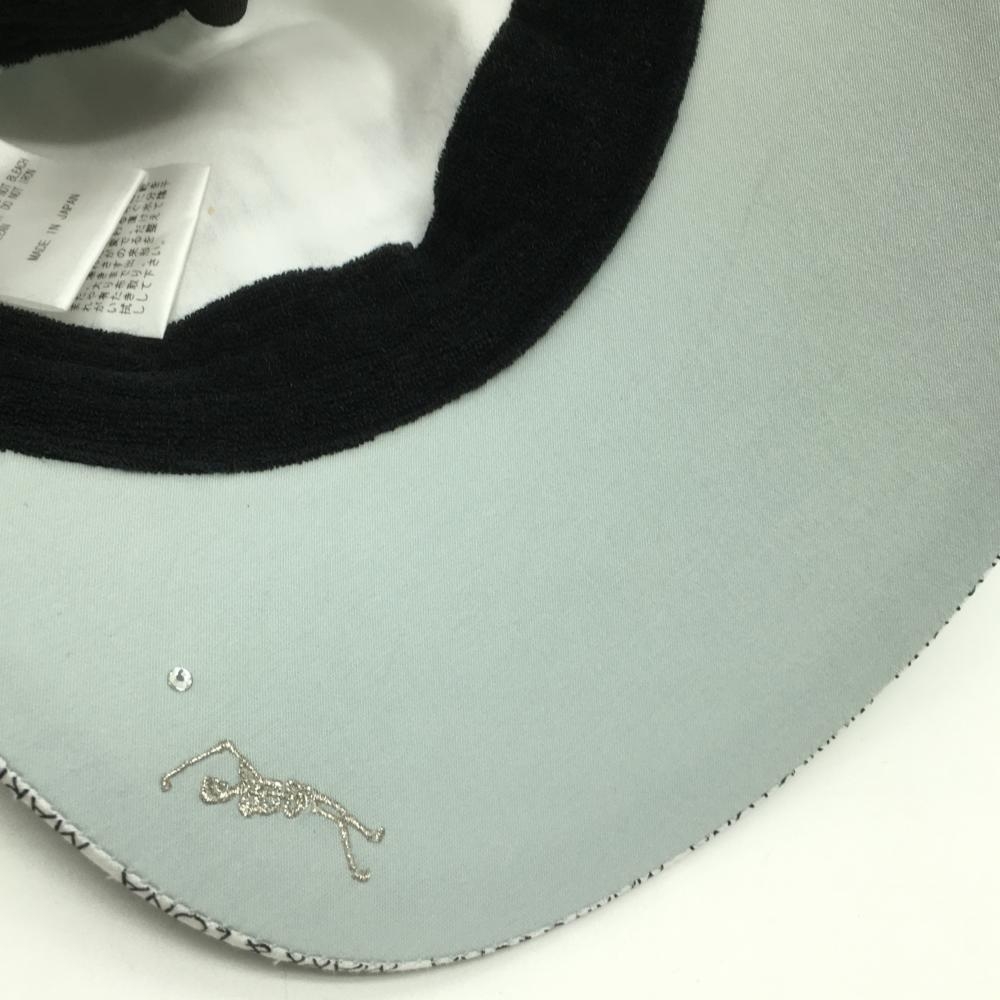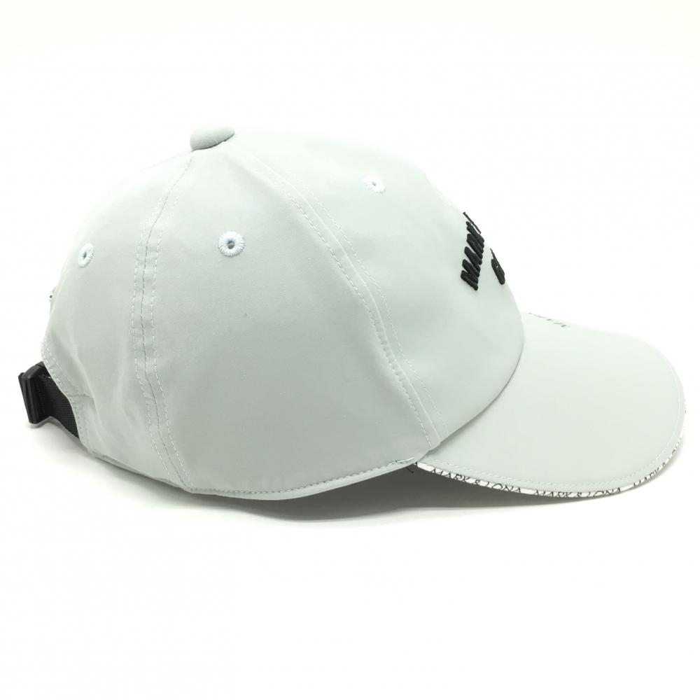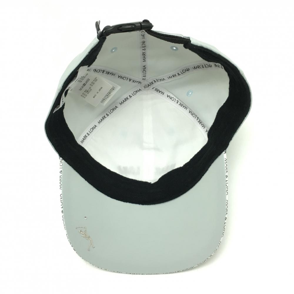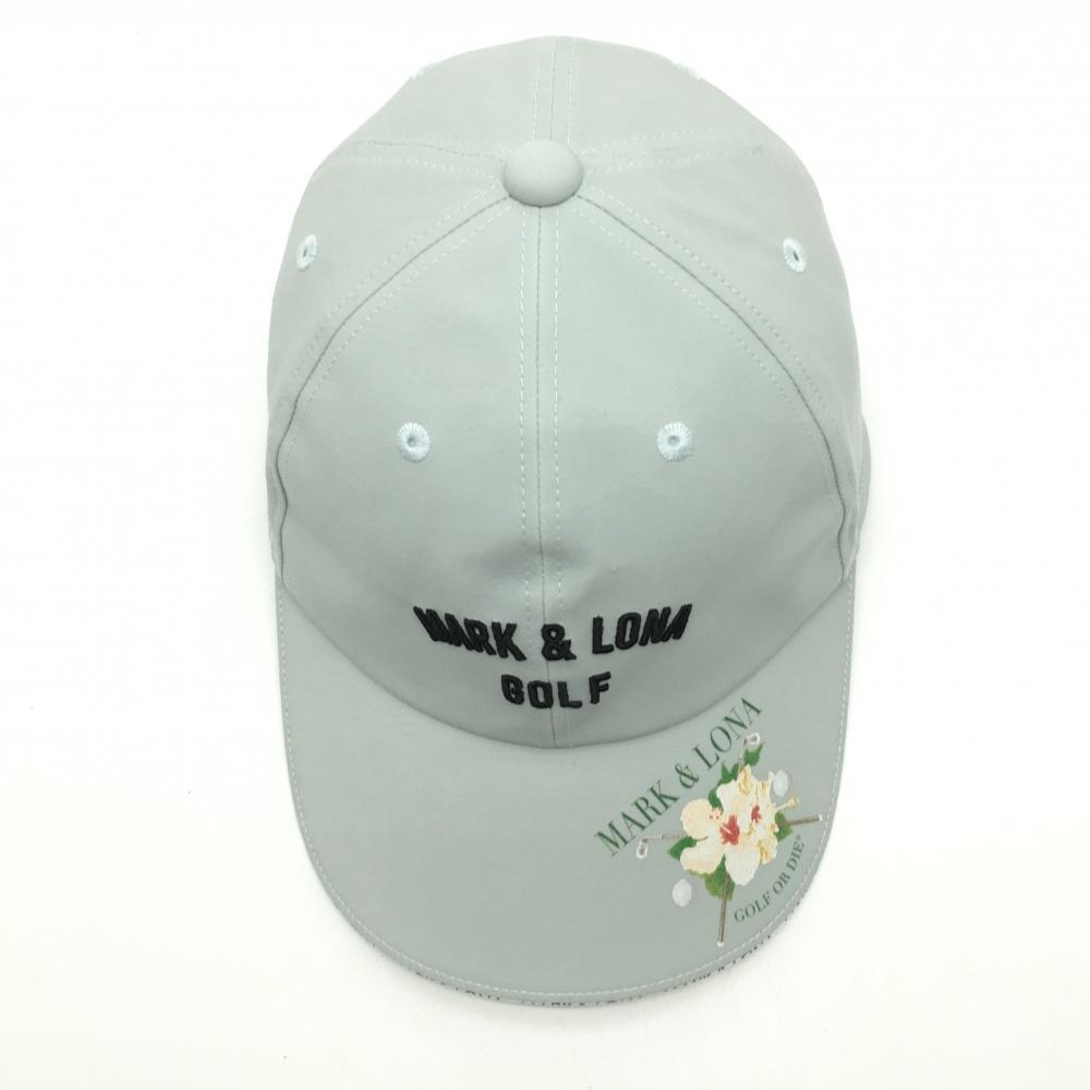 【超美品】マークアンドロナ キャップ ライトグレー つば縁ロゴ 花プリント ナイロン混 FREE ゴルフウェア MARK&LONA