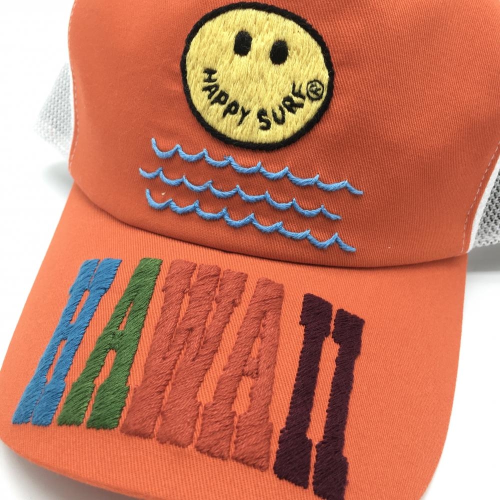 【超美品】ホーンガーメント メッシュキャップ オレンジ×白 ニコちゃん スマイル マークアンドロナ HAWAII ゴルフウェア MARK&LONA