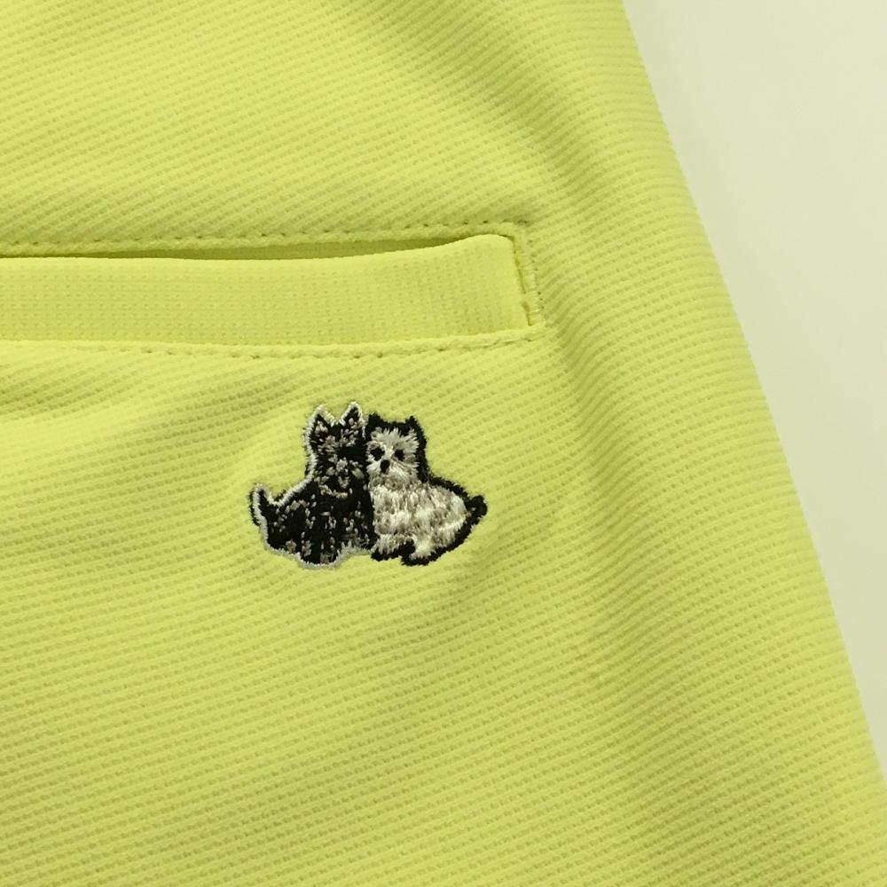 【美品】ブラックアンドホワイト パンツ イエロー系 バックロゴ刺しゅう ウエストゴム レディース M ゴルフウェア Black&White