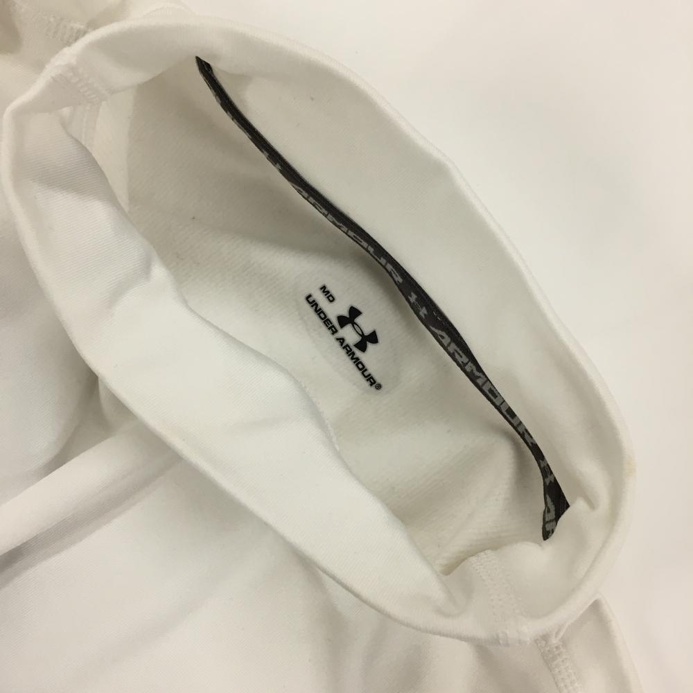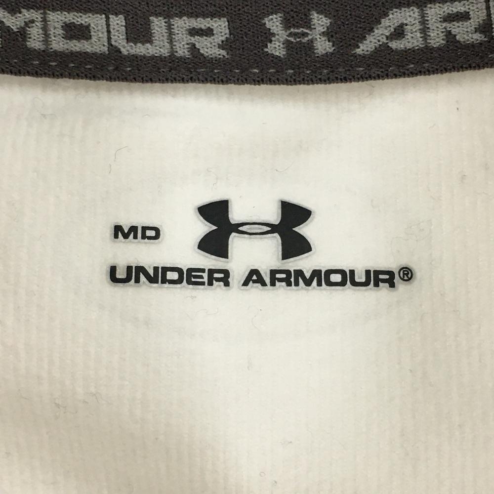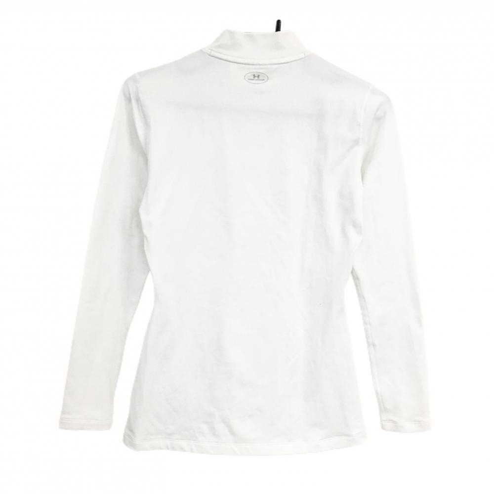 アンダーアーマー ハイネックインナーシャツ 白×グレー ネックロゴ刺しゅう 裏微起毛 メンズ MD ゴルフウェア UNDER ARMOUR