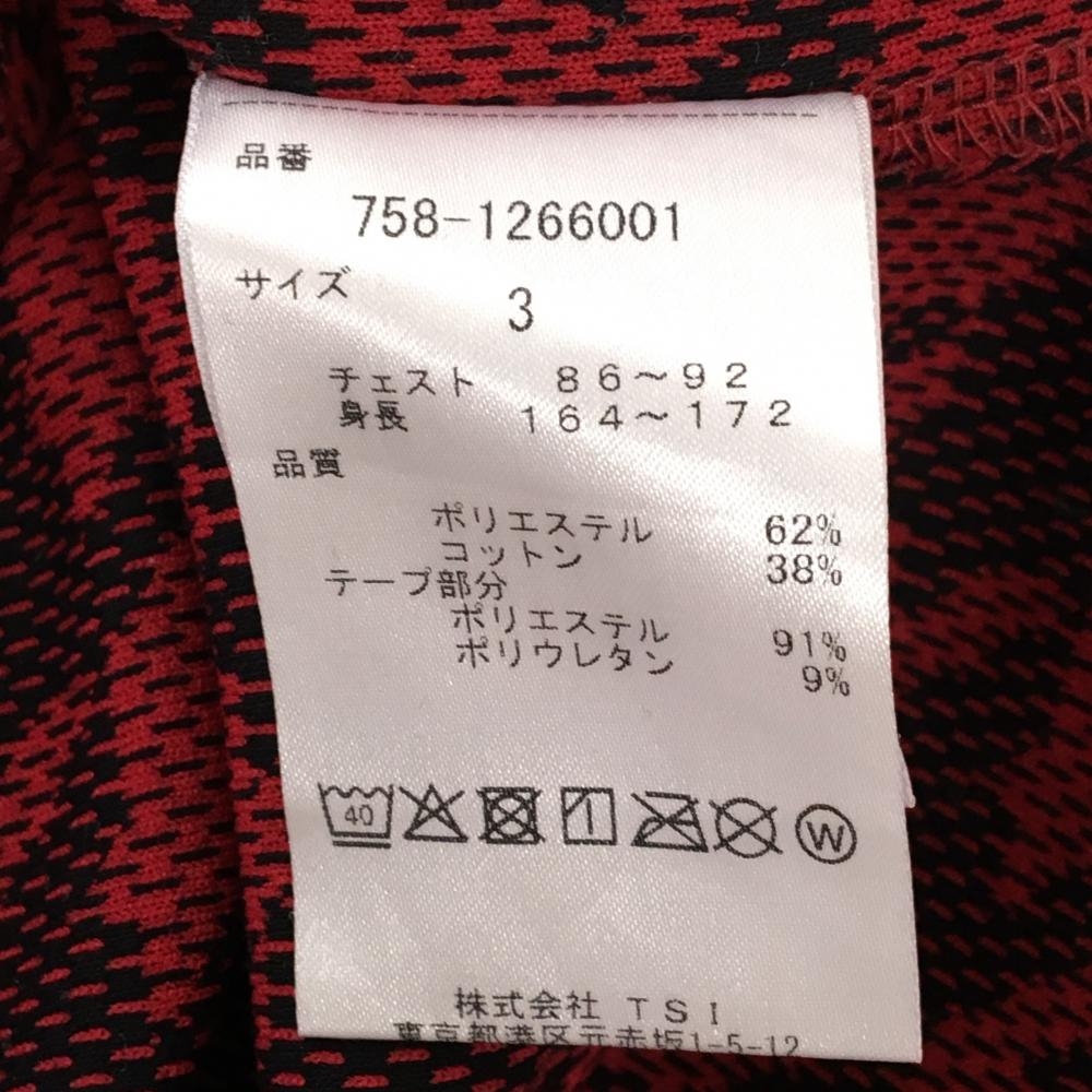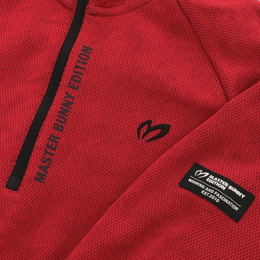 【超美品】マスターバニー 長袖ハイネックシャツ レッド×黒 背面ライン 裏千鳥格子 メンズ 3(S) ゴルフウェア MASTER BUNNY EDITION