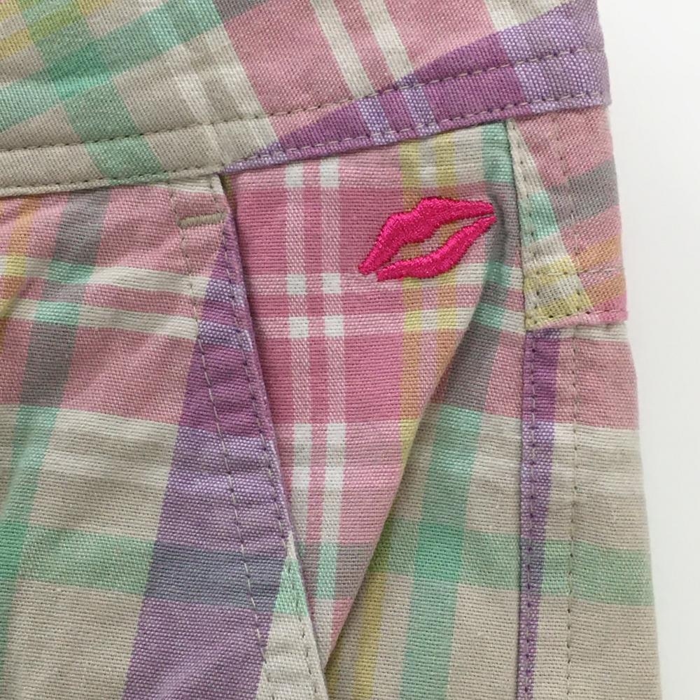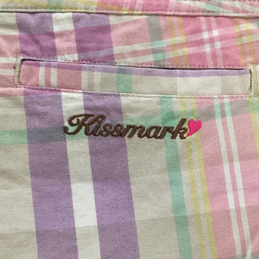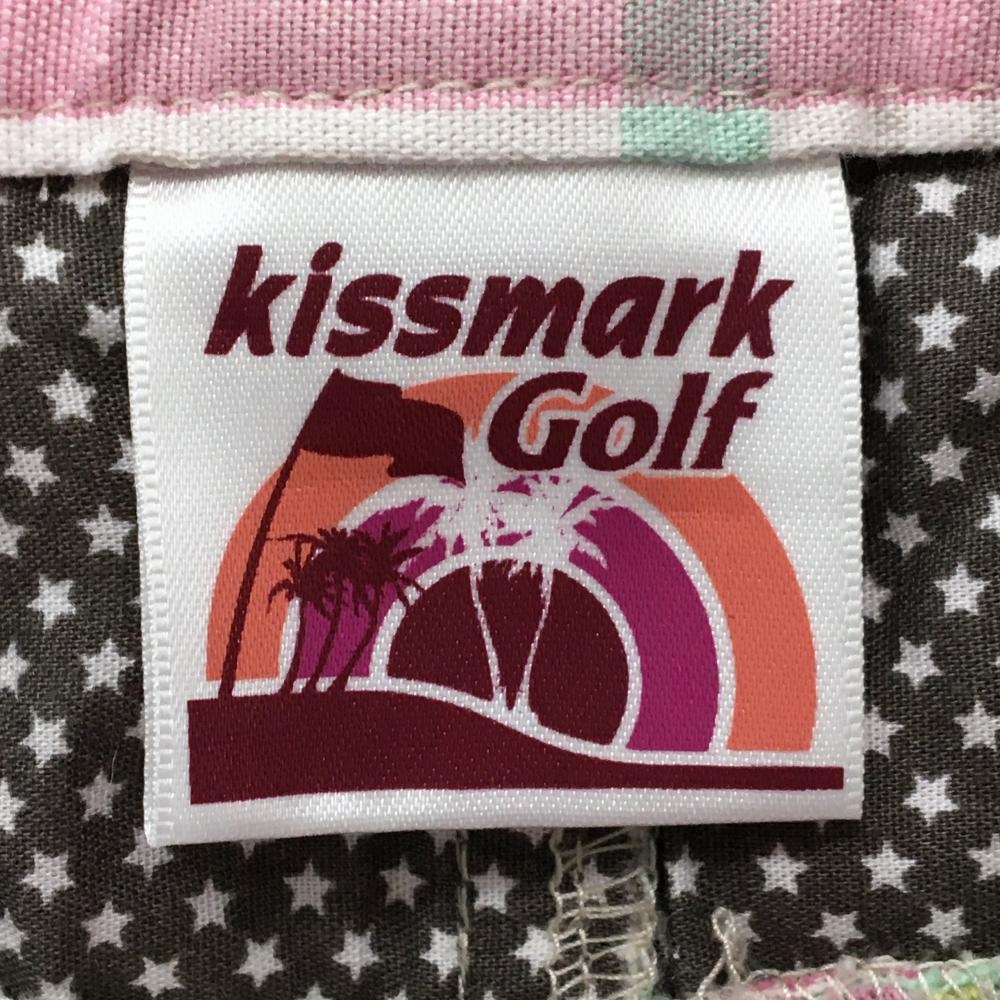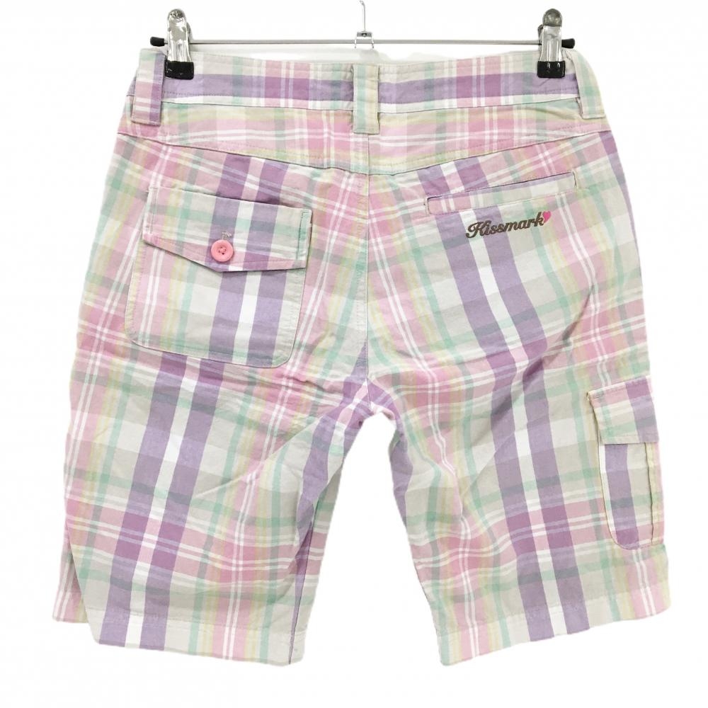【超美品】キスマークゴルフ ハーフパンツ ピンク×パープル チェック サイドポケット レディース 9 ゴルフウェア Kissmark Golf