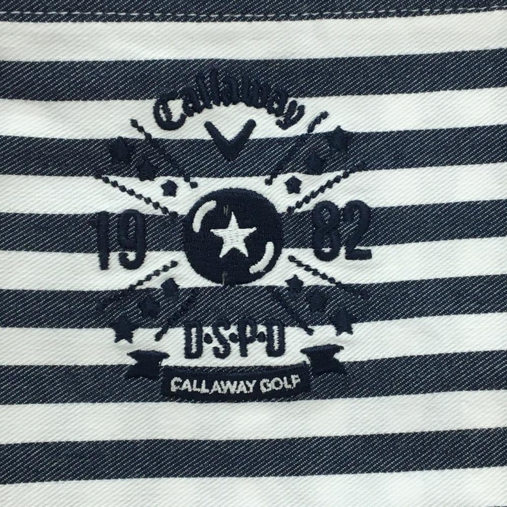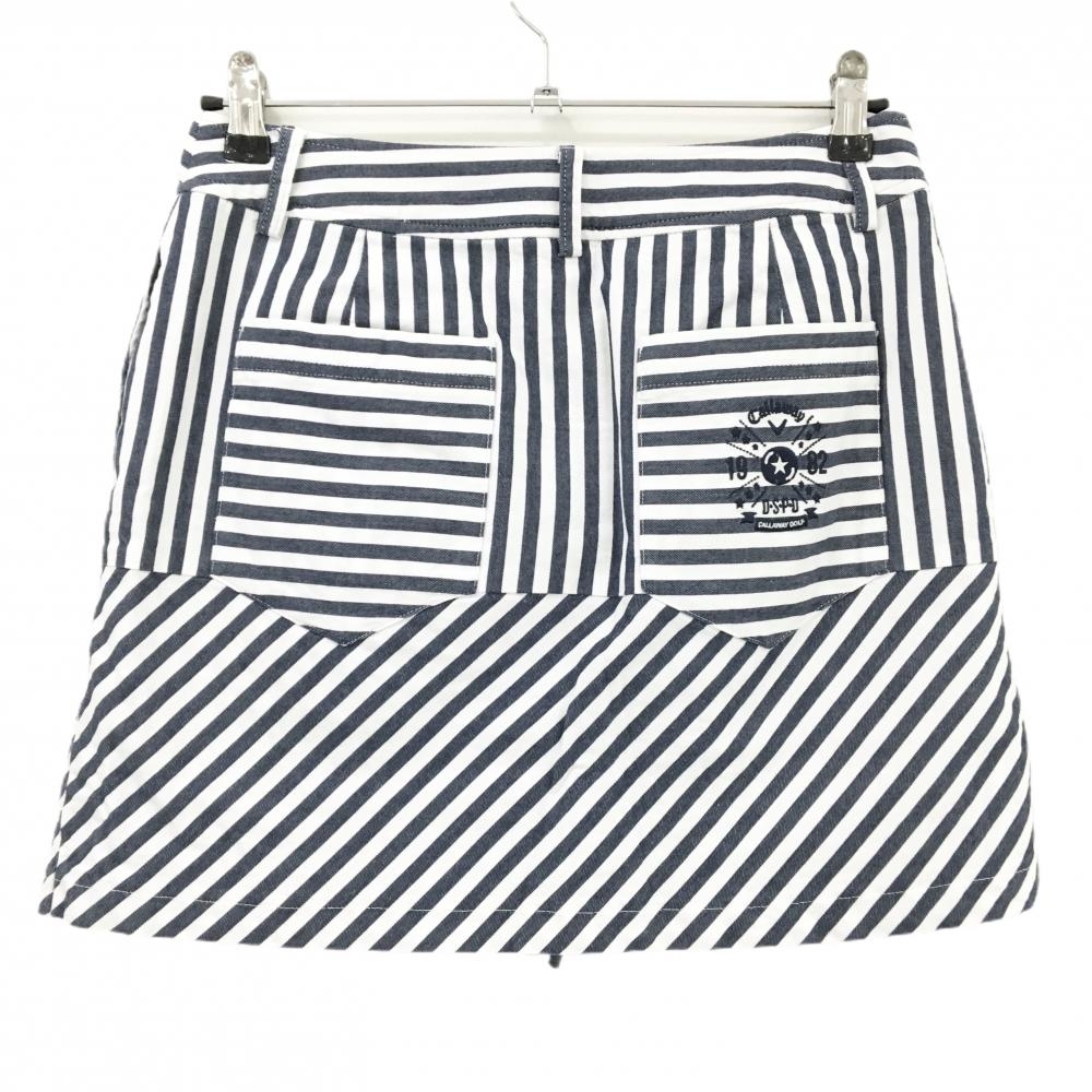 【美品】キャロウェイ スカート 白×ネイビー ストライプ 内側パンツ レディース L ゴルフウェア Callaway