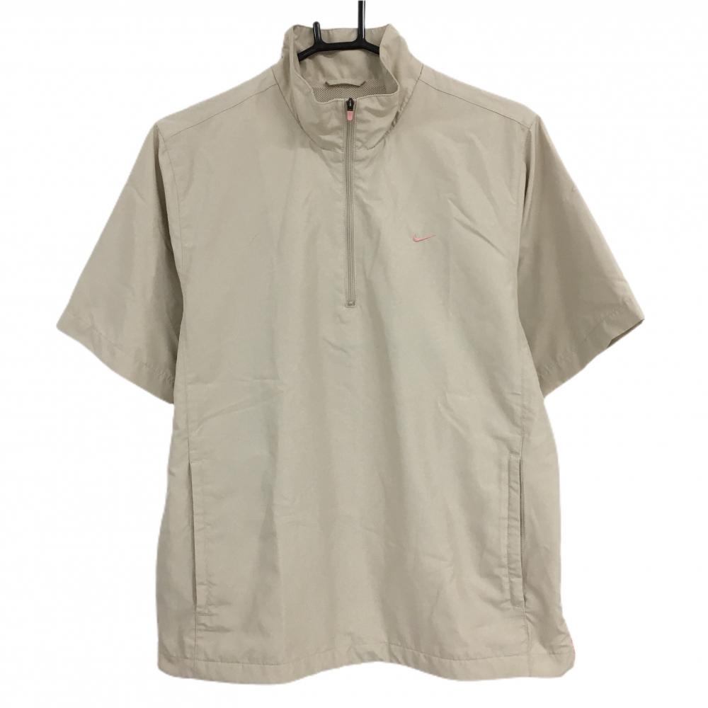 【超美品】ナイキゴルフ 半袖ブルゾン ベージュ×ライトピンク ハーフジップ メッシュ裏地 胸ロゴ レディース LGG ゴルフウェア NIKE