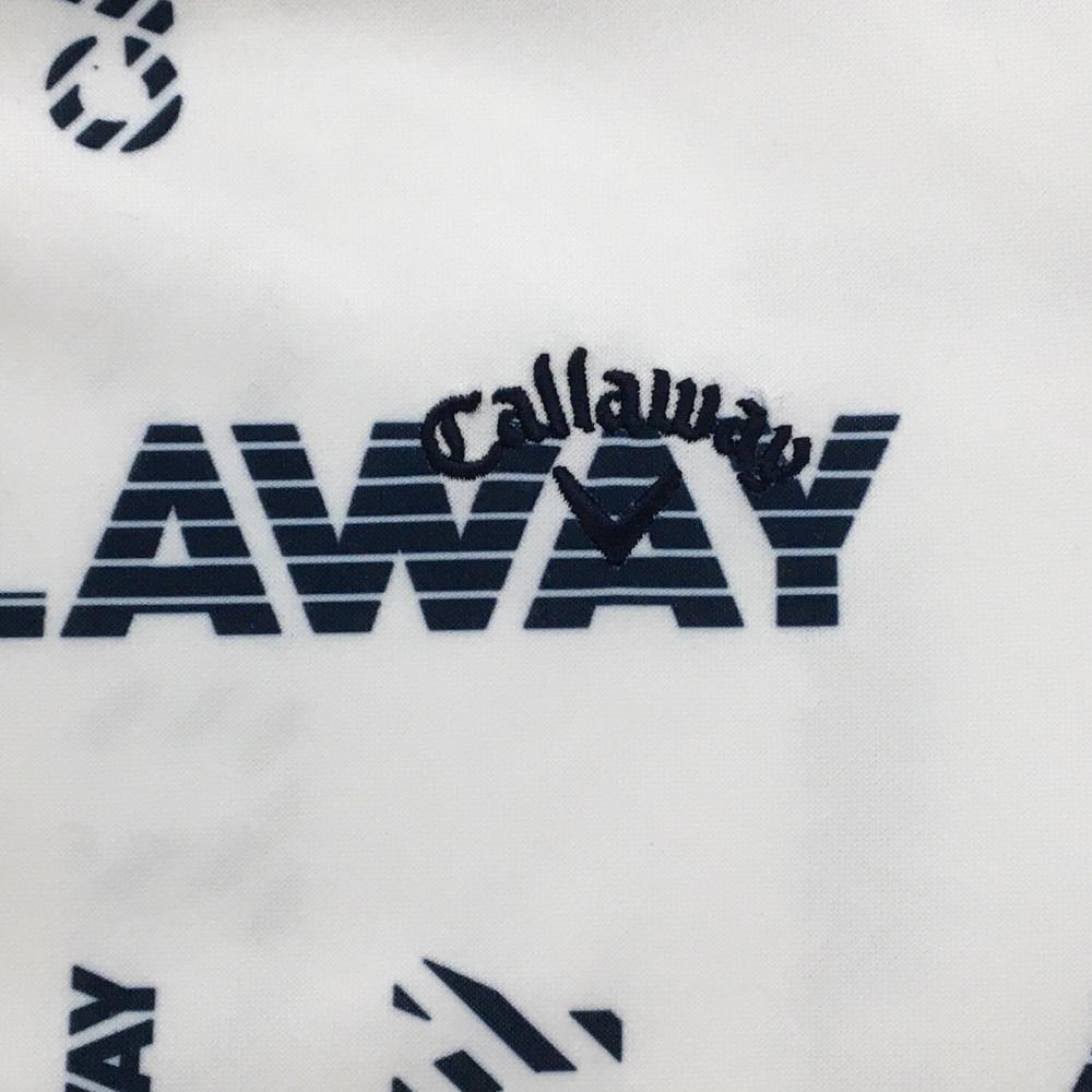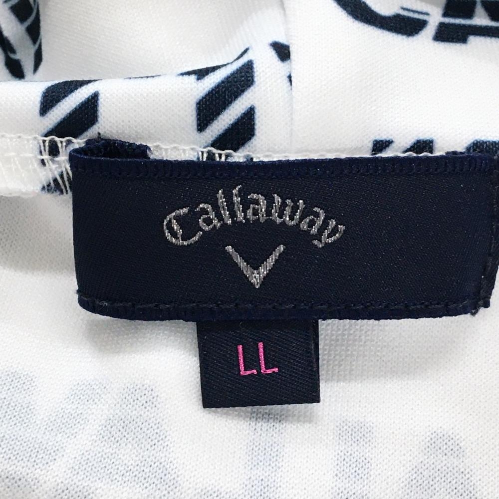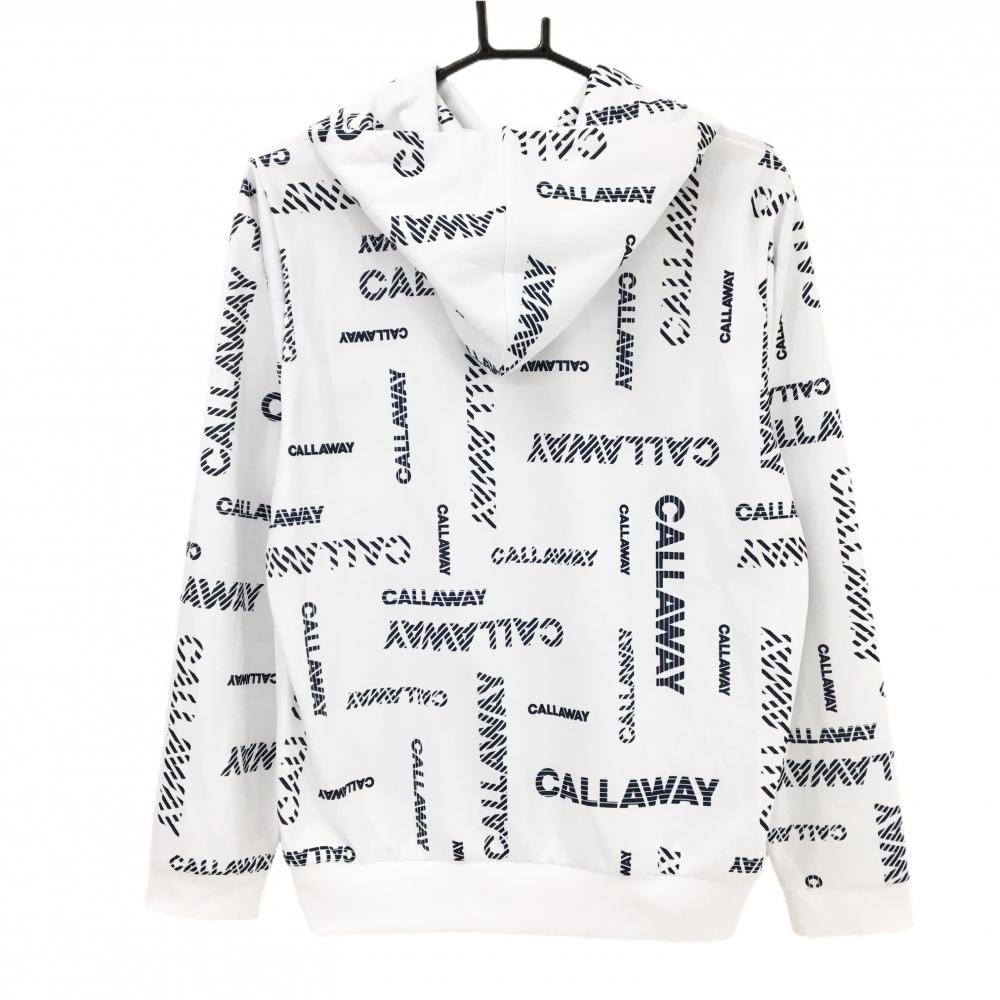 【超美品】キャロウェイ パーカー 白×ネイビー ロゴ総柄 トレーナー レディース LL ゴルフウェア Callaway