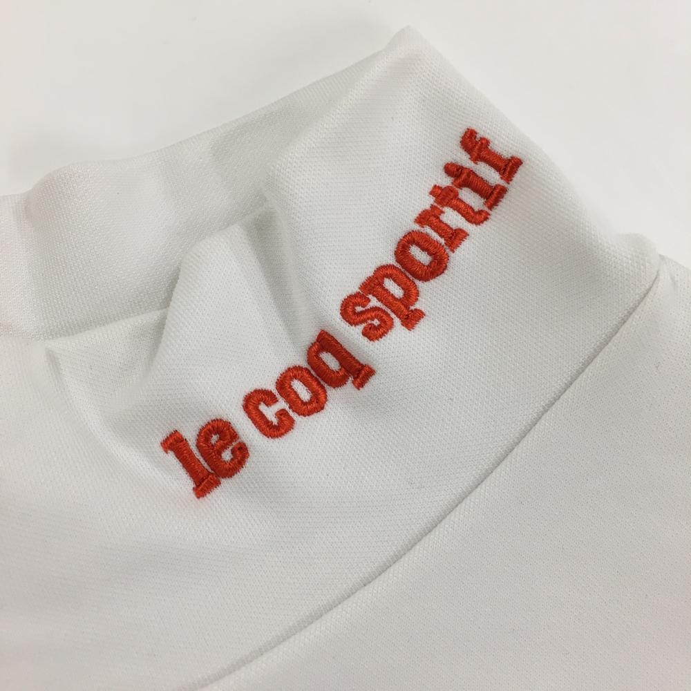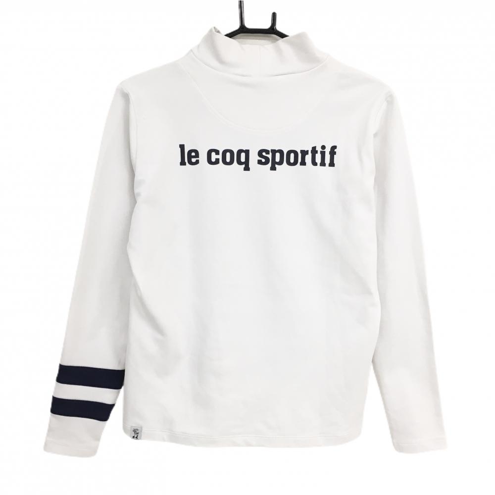 【超美品】ルコックゴルフ 長袖ハイネックシャツ 白 裏微起毛 袖ネイビーライン レディース LL ゴルフウェア le coq sportif