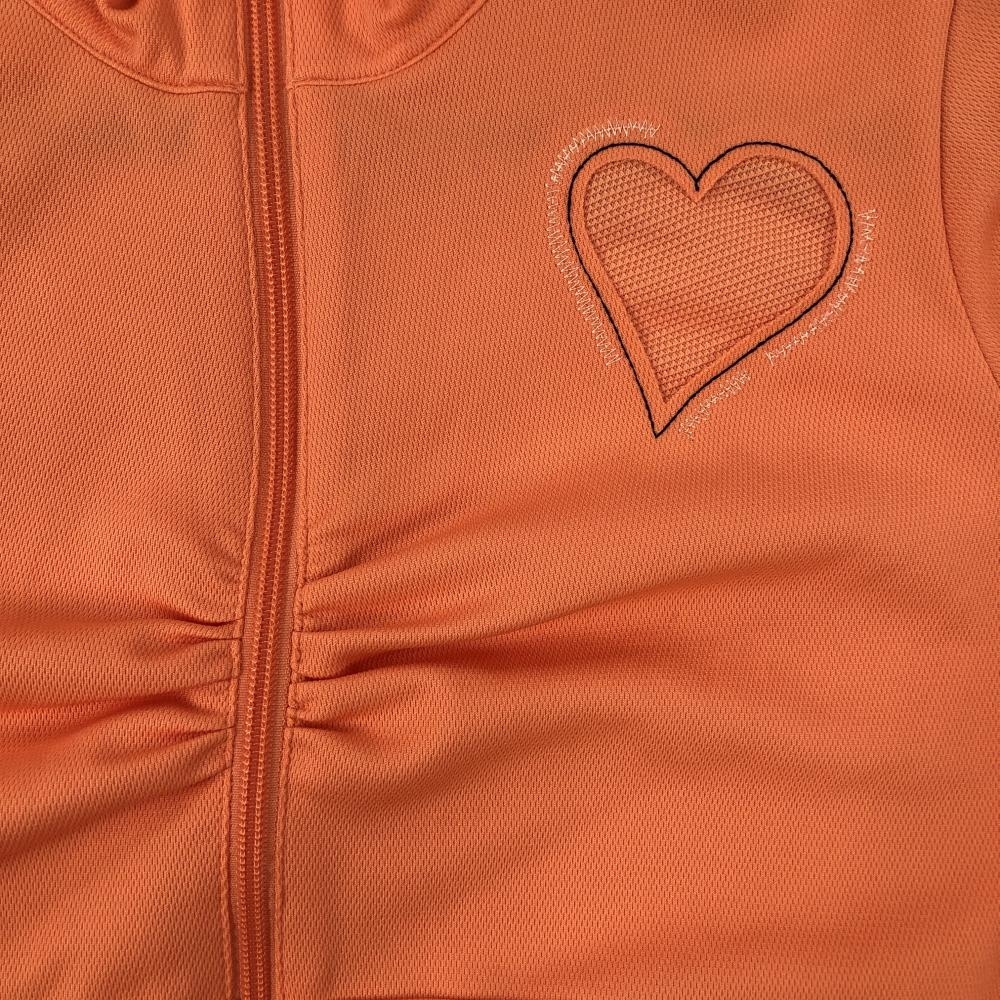【超美品】ビバハート ジャケット オレンジ ハート 袖口ボーダー 胸元シャーリング レディース 40(M) ゴルフウェア VIVA HEART