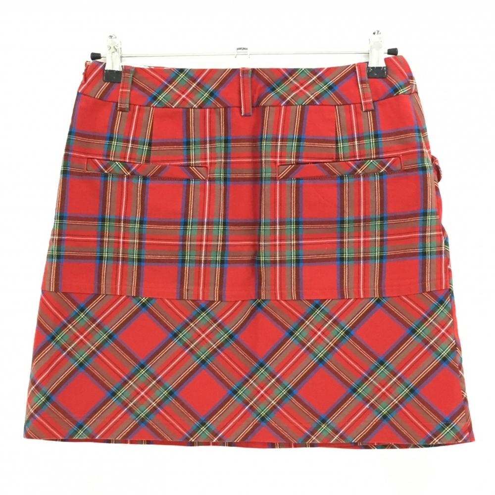 【超美品】キャロウェイ スカート レッド×ブルー チェック柄 裾ロゴ刺しゅう レディース M ゴルフウェア Callaway