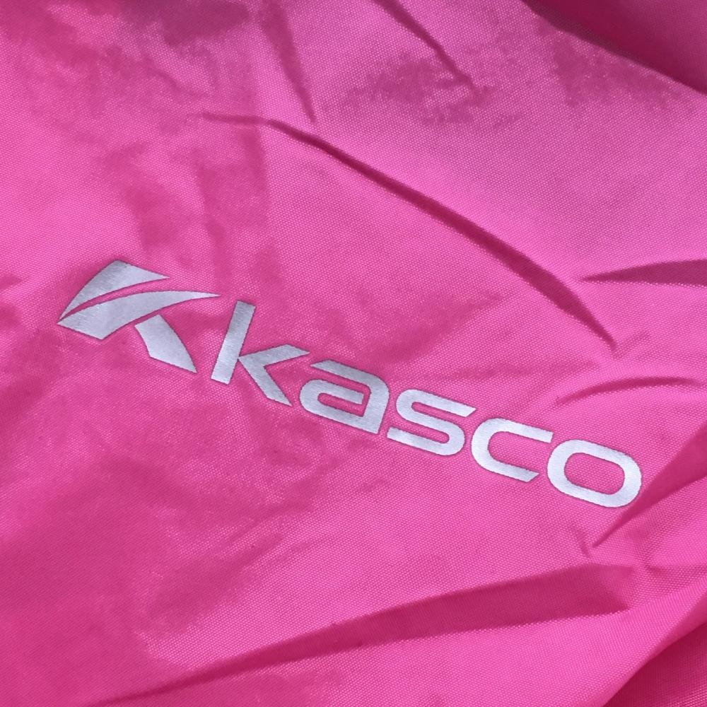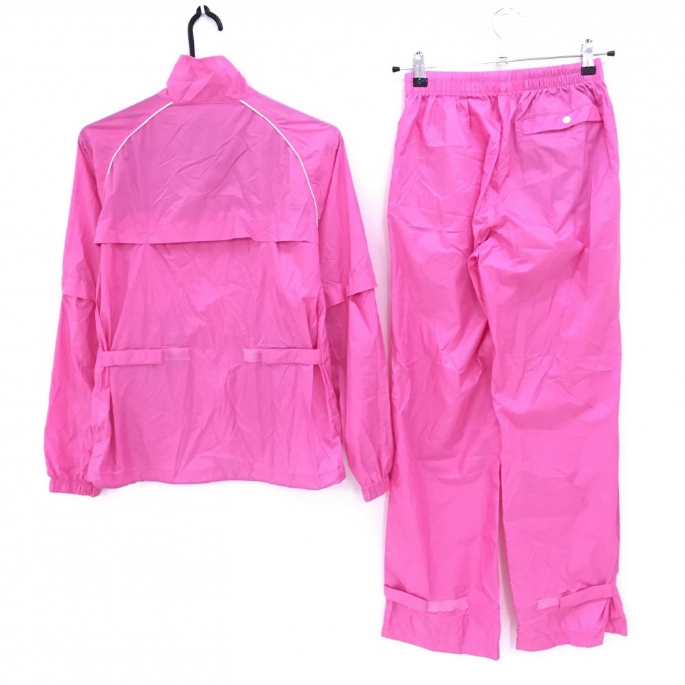 【美品】キャスコ レインウェア(2WAYジャケット×パンツ) ピンク 袖着脱可 収納袋付 レディース M ゴルフウェア kasco