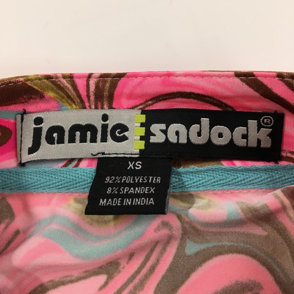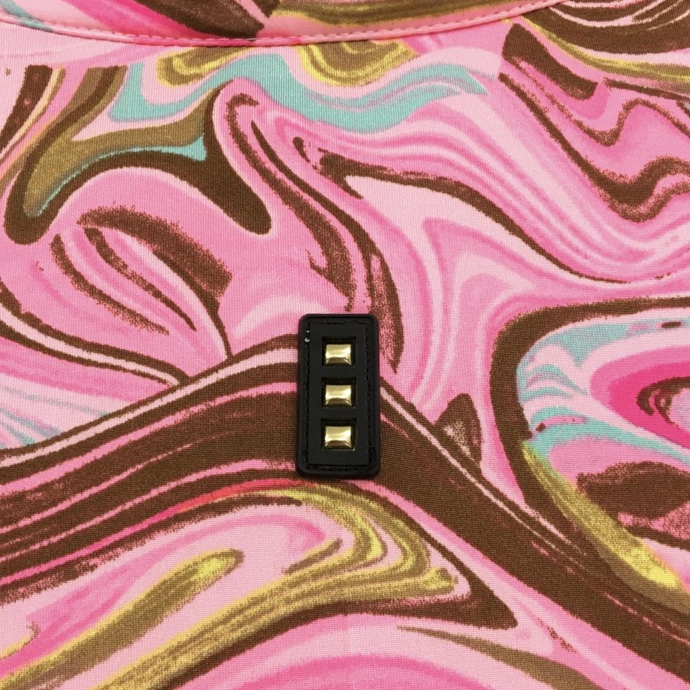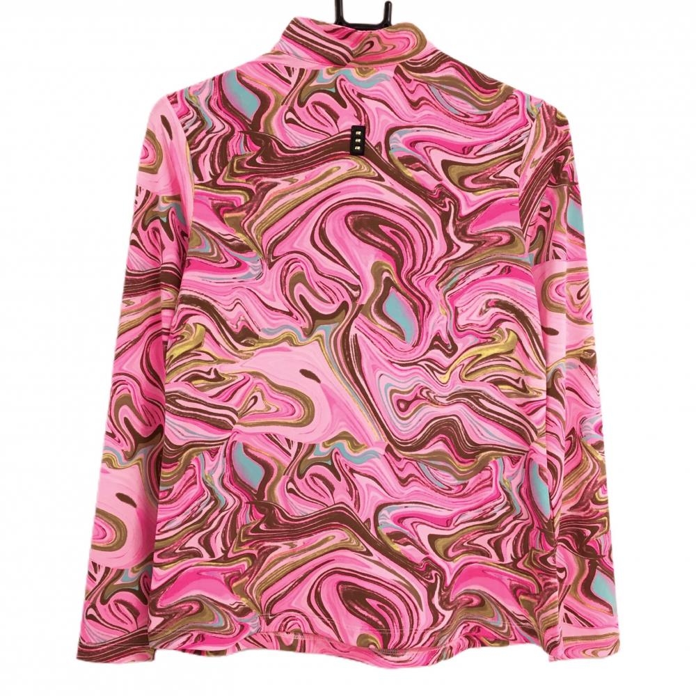 【超美品】ジェイミーサドック 長袖ハイネックシャツ ピンク×ブラウン マーブル柄 レディース XS ゴルフウェア jamie sadock