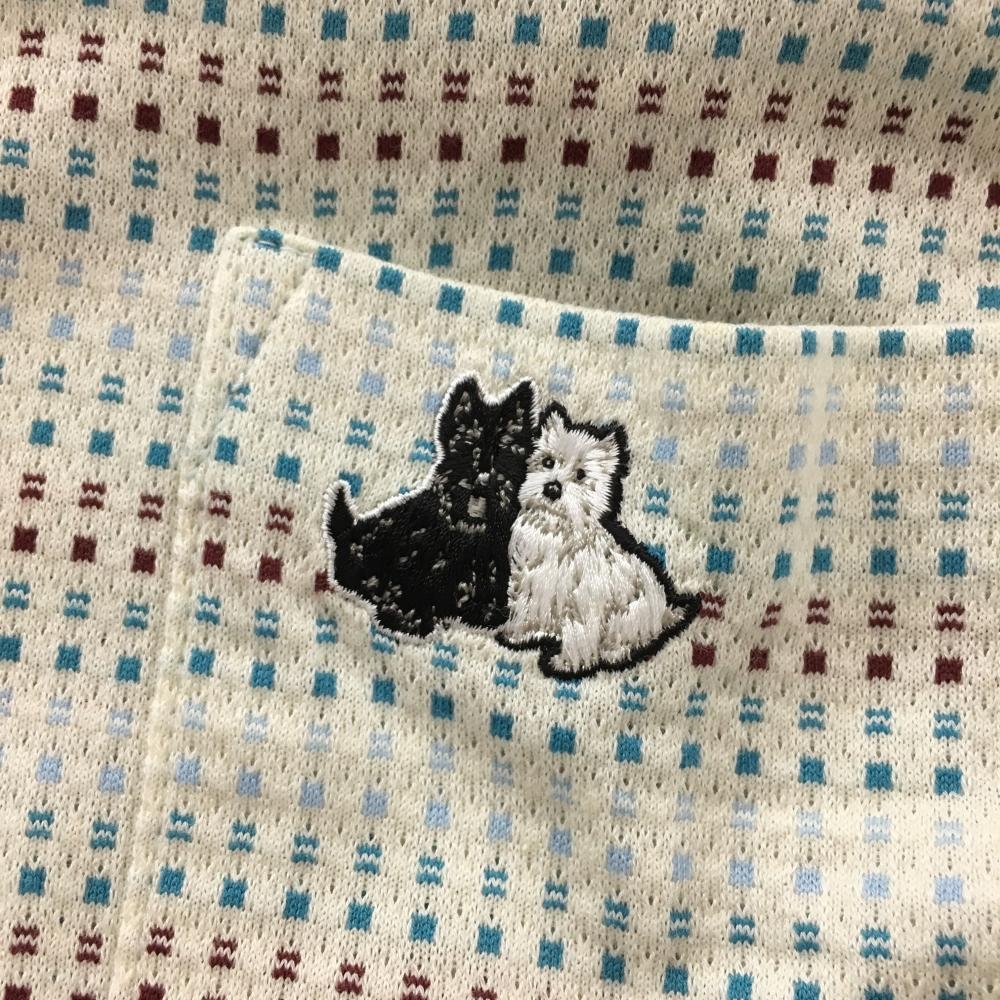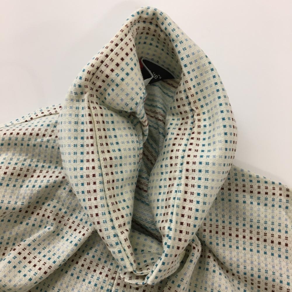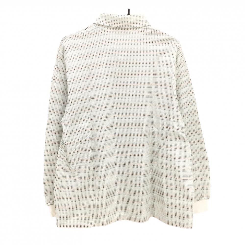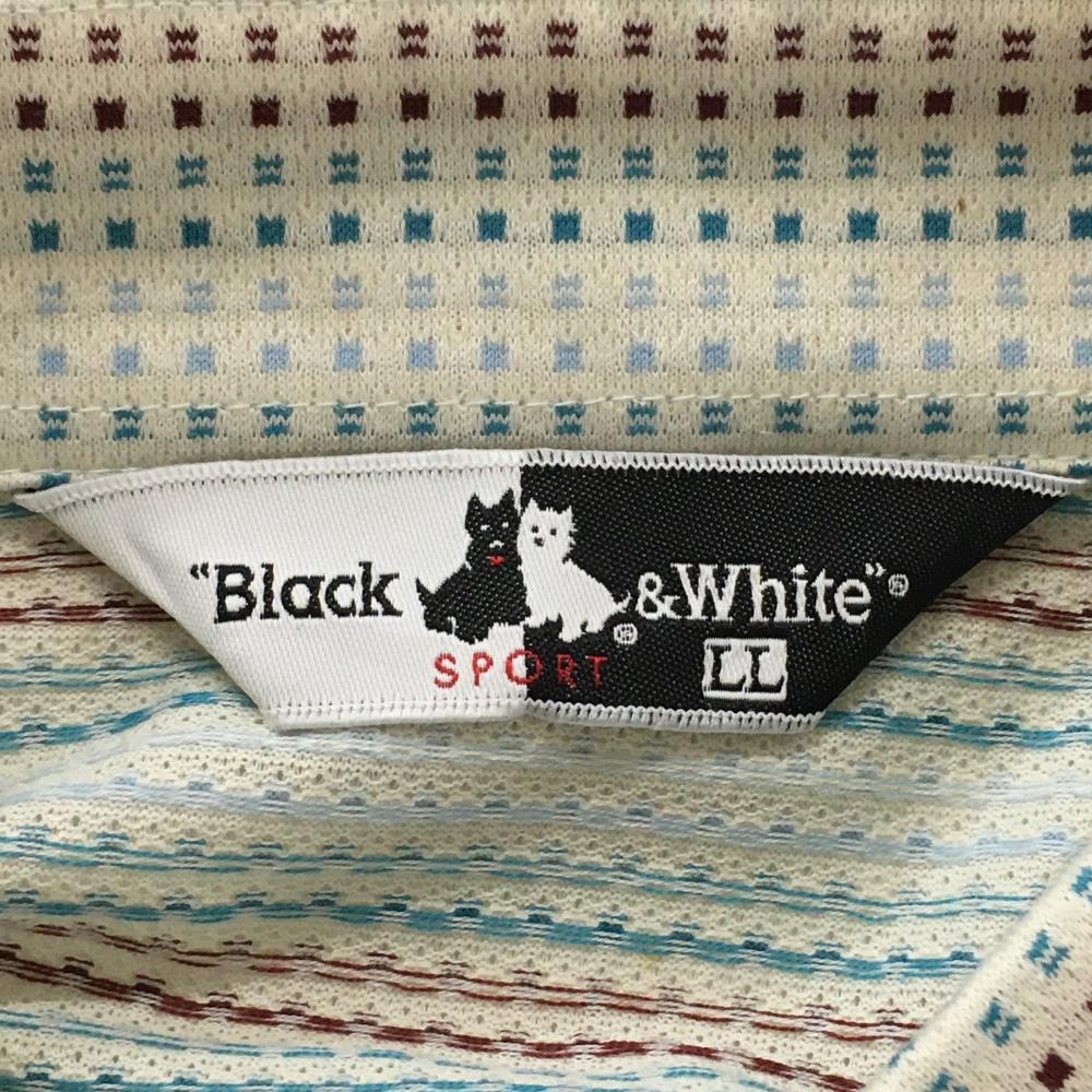 【美品】ブラックアンドホワイト 長袖ポロシャツ 白×ライトブルー×ボルドー ブロック柄風 メンズ LL ゴルフウェア Black&White