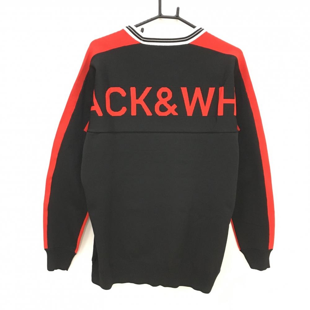 【超美品】ブラックアンドホワイト セーター 黒×レッド 背面ビッグロゴ ニット メンズ LL ゴルフウェア Black&White