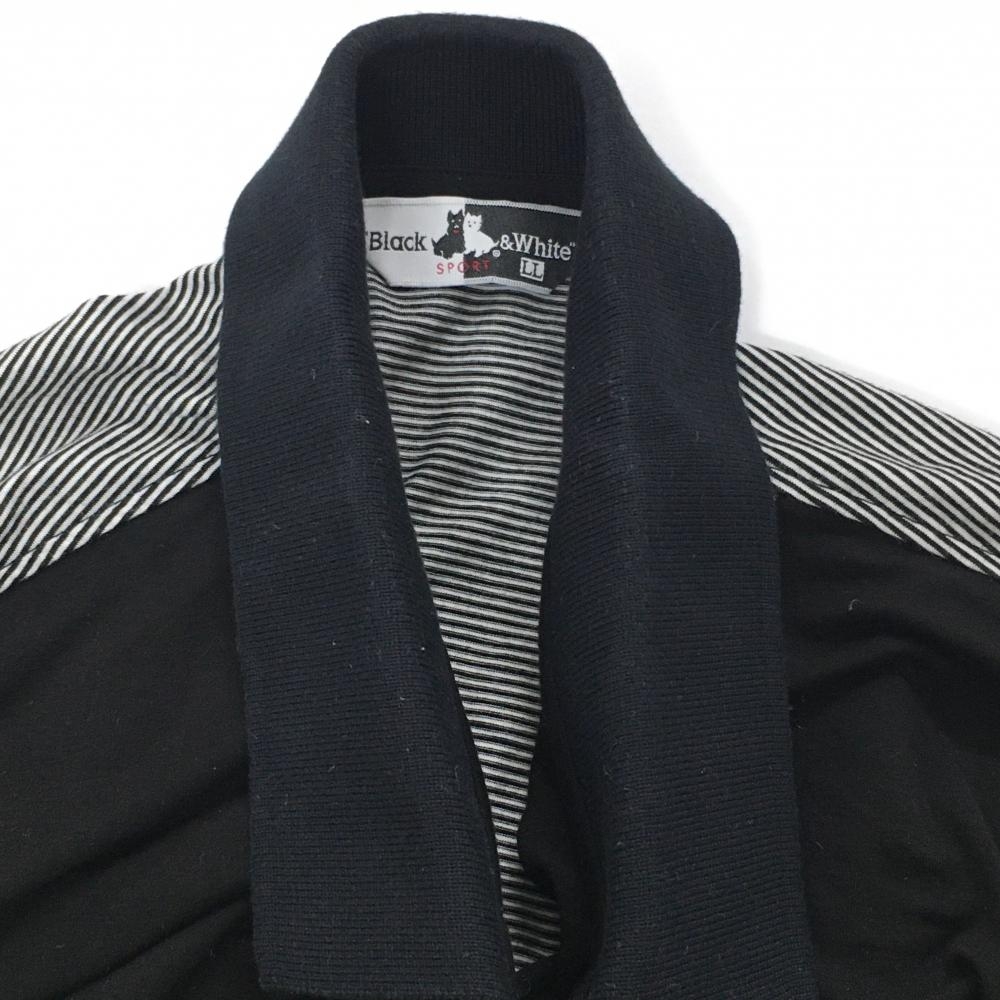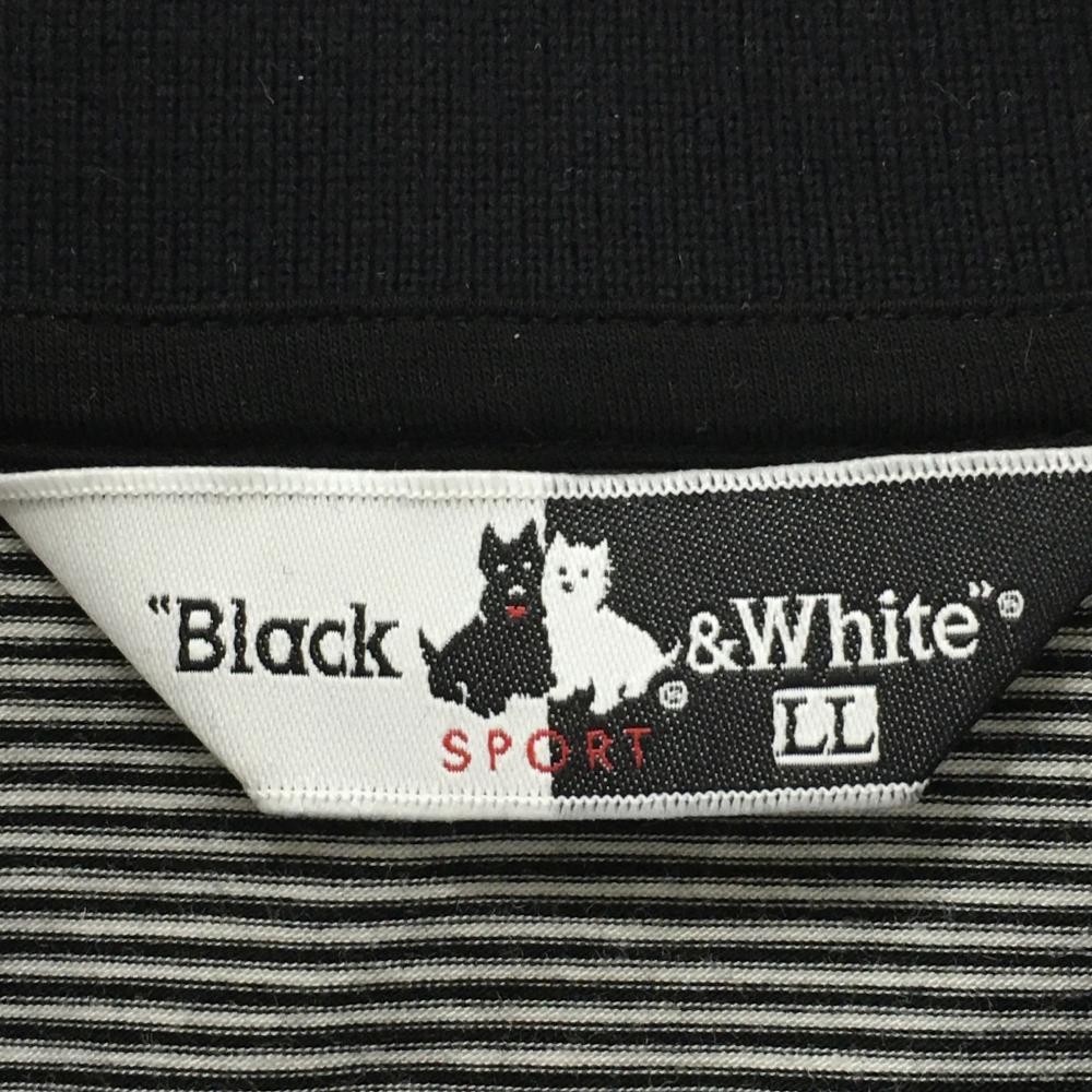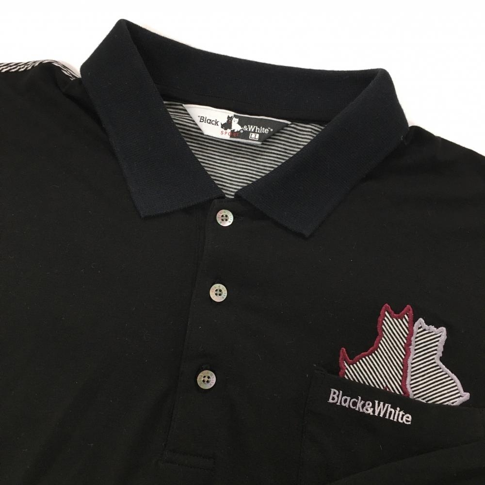 ブラックアンドホワイト 長袖ポロシャツ 黒×白 背面ボーダー 胸ポケット メンズ LL ゴルフウェア Black&White