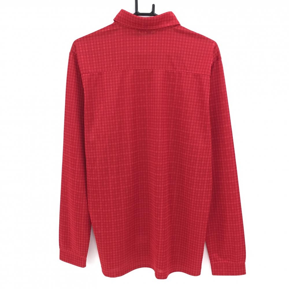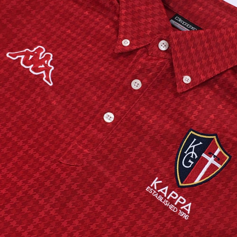 【超美品】カッパ 長袖ポロシャツ レッド 千鳥格子地模様 ボタンダウン メンズ XO ゴルフウェア 大きいサイズ Kappa