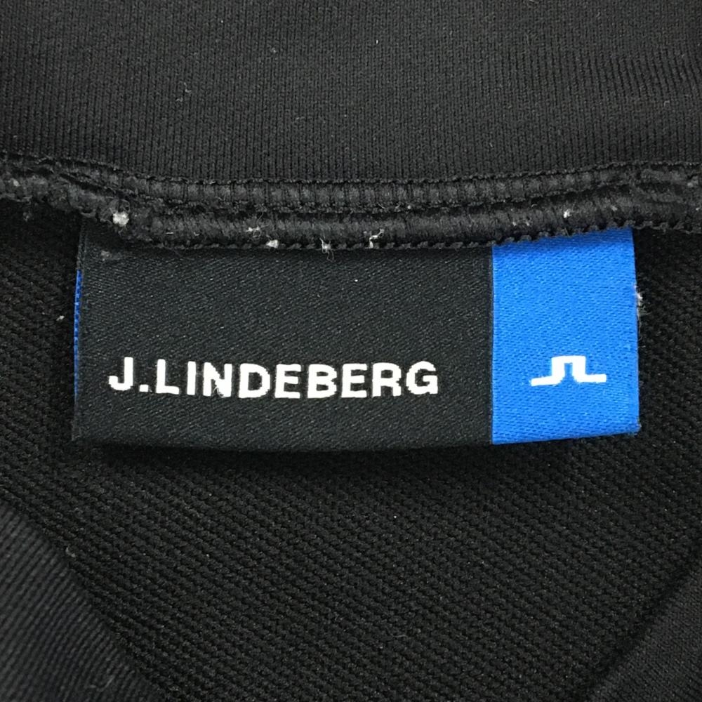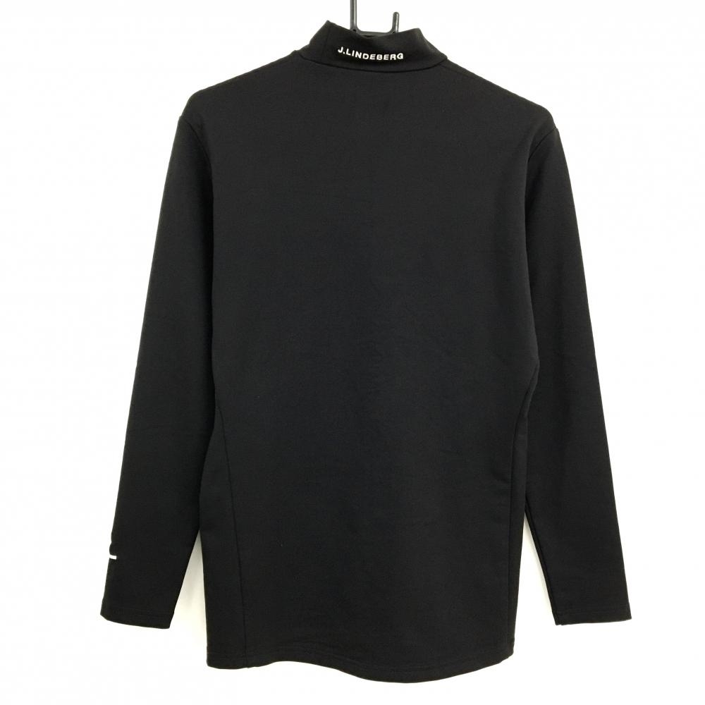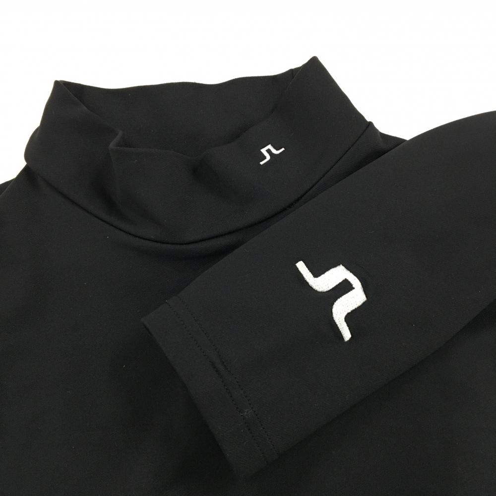 【美品】ジェイリンドバーグ 長袖ハイネックシャツ 黒 ネックロゴ白 裏微起毛 メンズ ゴルフウェア J.LINDEBERG