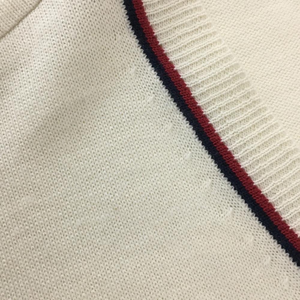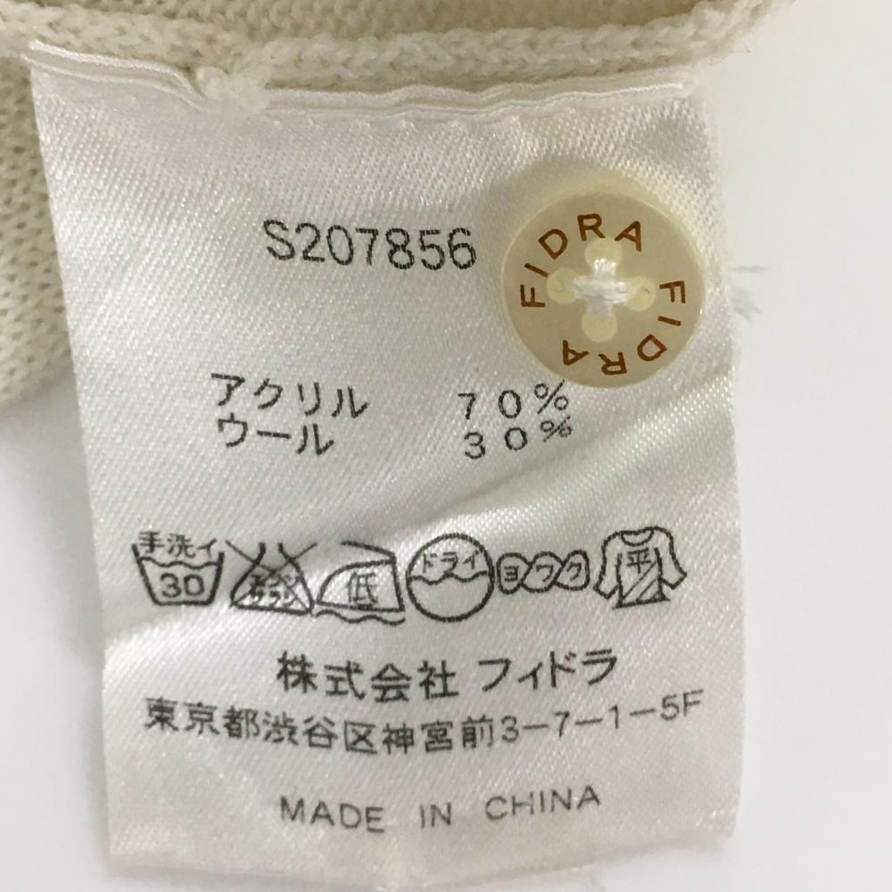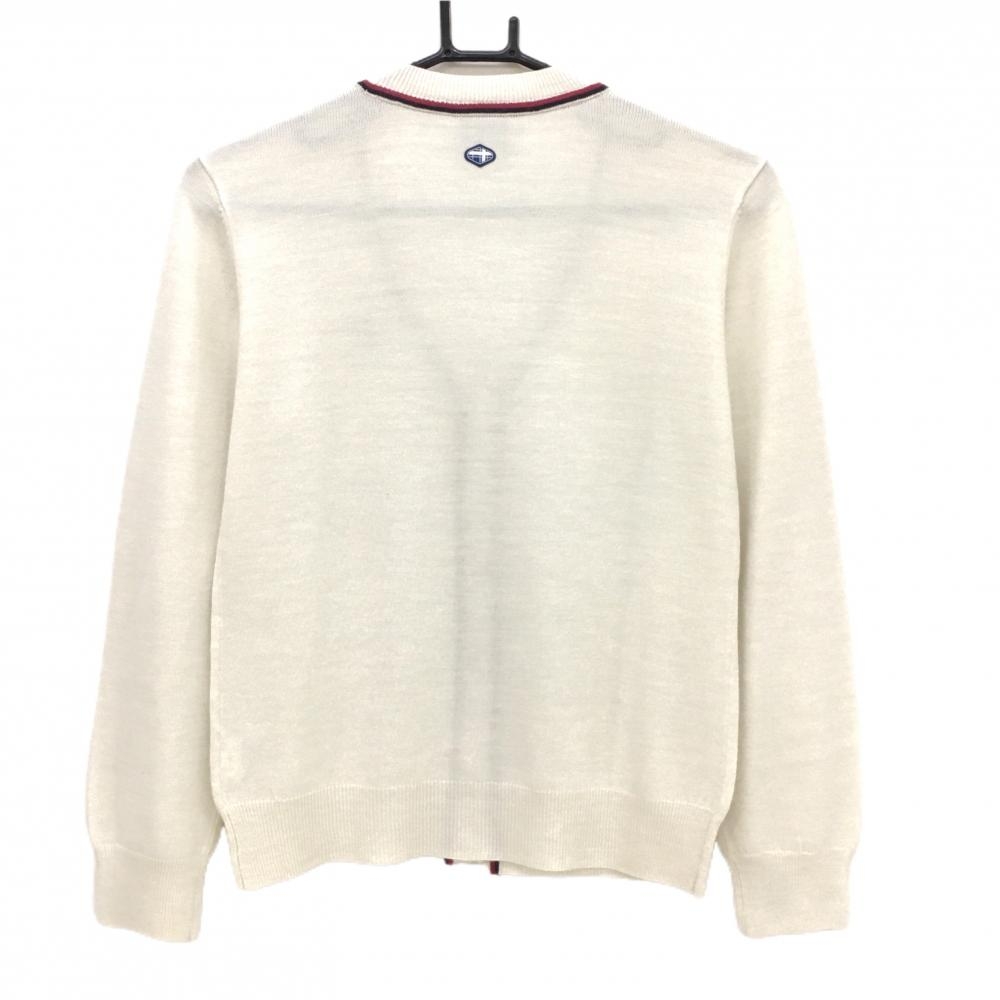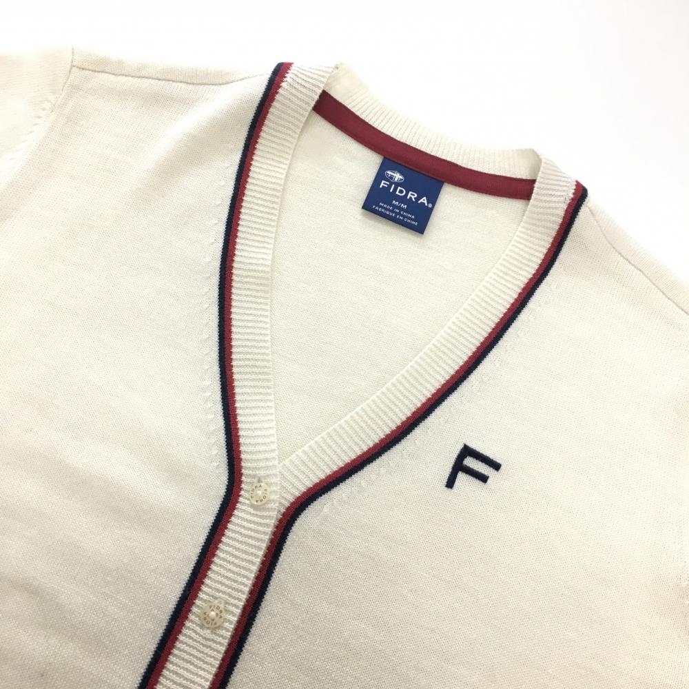 【超美品】フィドラ Vネックカーディガン 白×レッド×ネイビー ウール混 ロゴ刺しゅう レディース M/M ゴルフウェア FIDRA