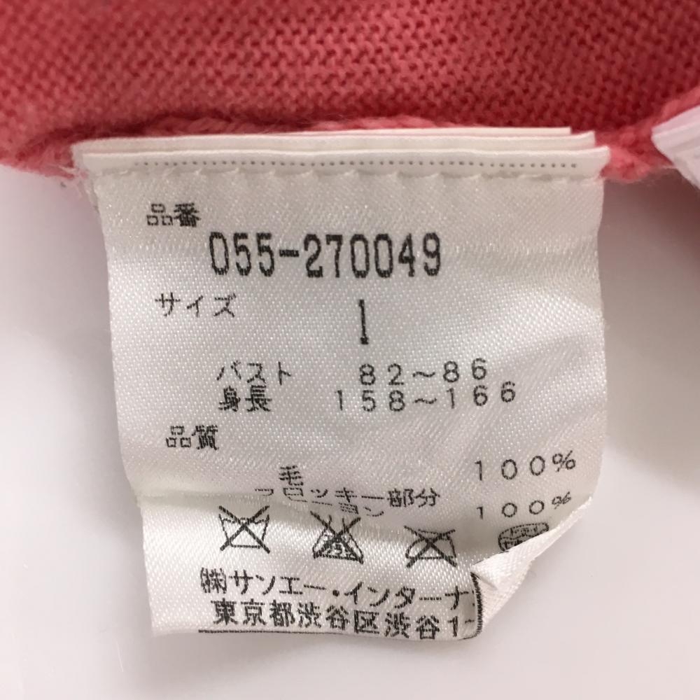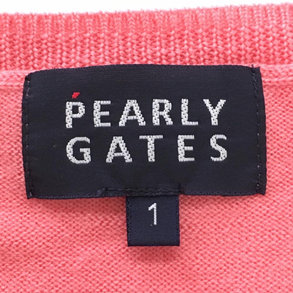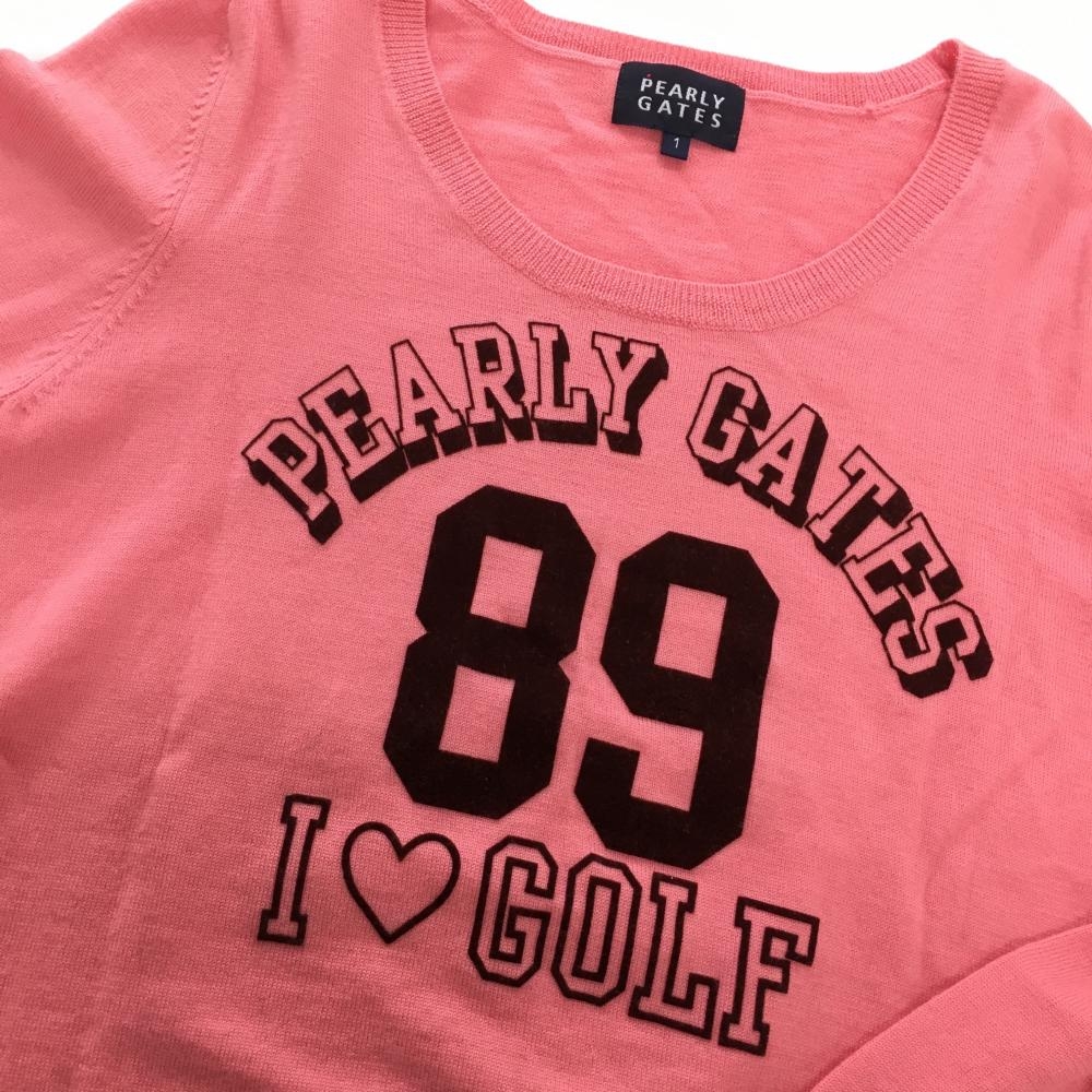 【超美品】パーリーゲイツ セーター ピンク×ボルドー フロッキーワッペン ウール100% ニット レディース 1(M) ゴルフウェア PEARLY GATES