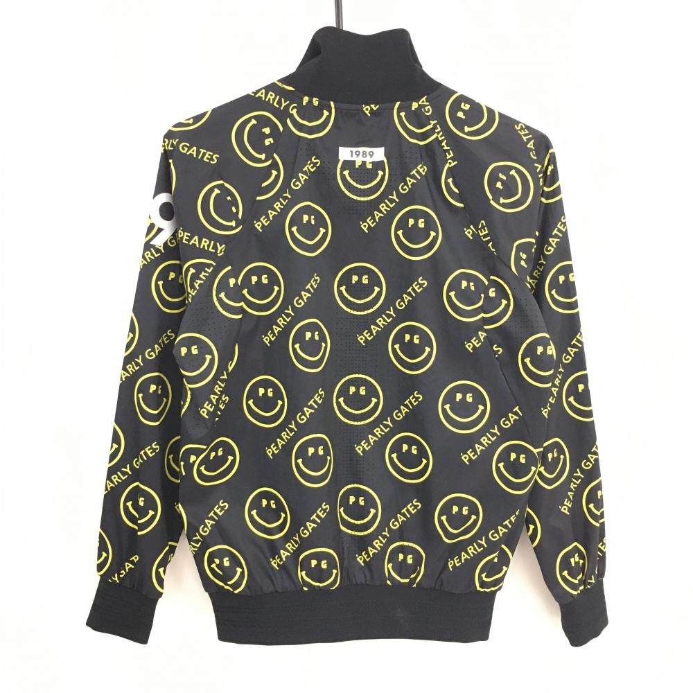 【美品】パーリーゲイツ ジャケットブルゾン ネイビー×イエロー ニコちゃん総柄 スマイル レディース 0(S) ゴルフウェア PEARLY GATES