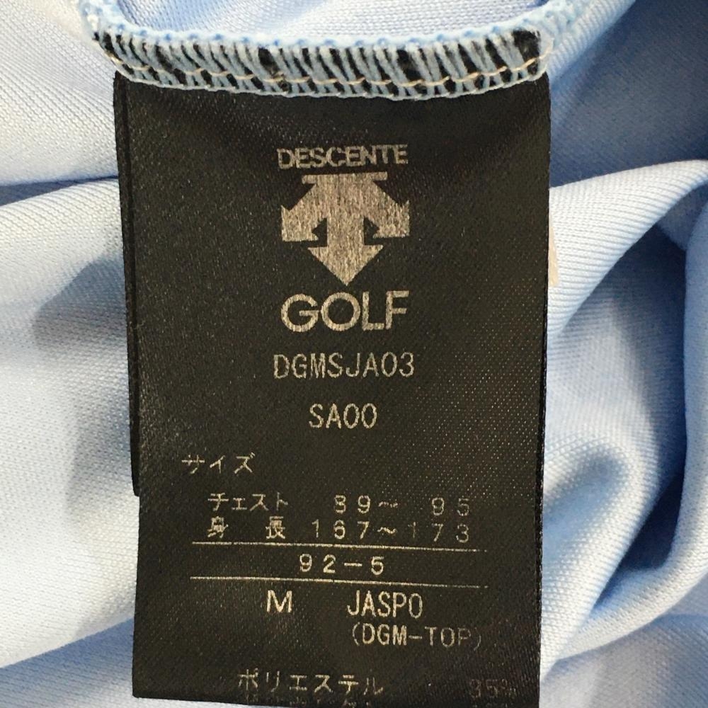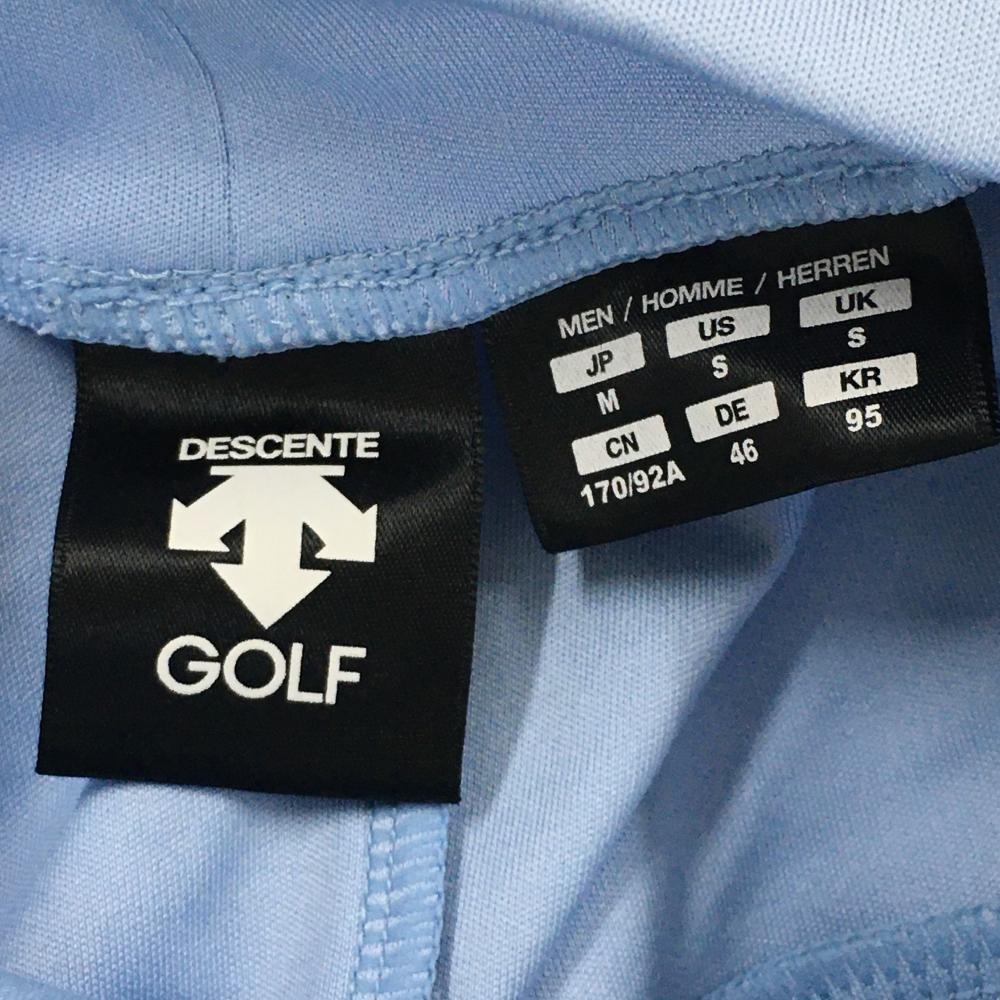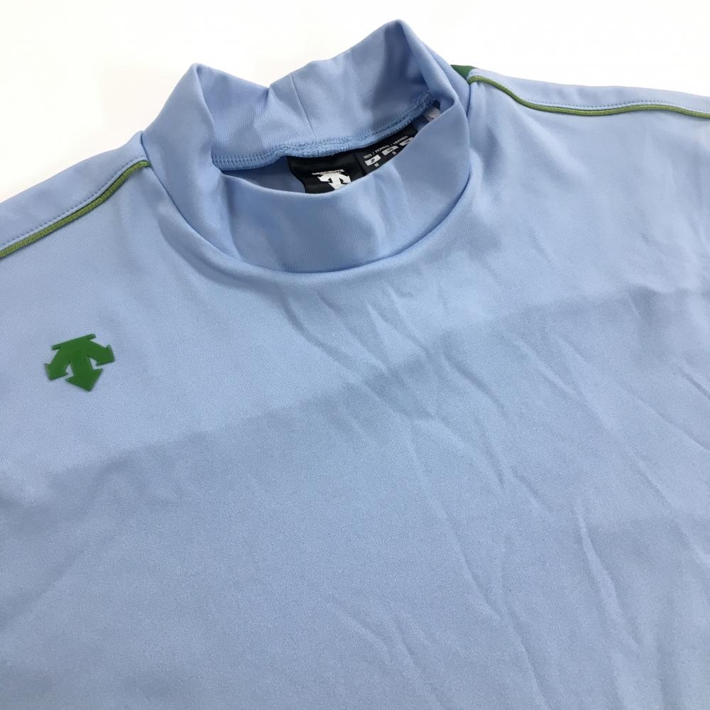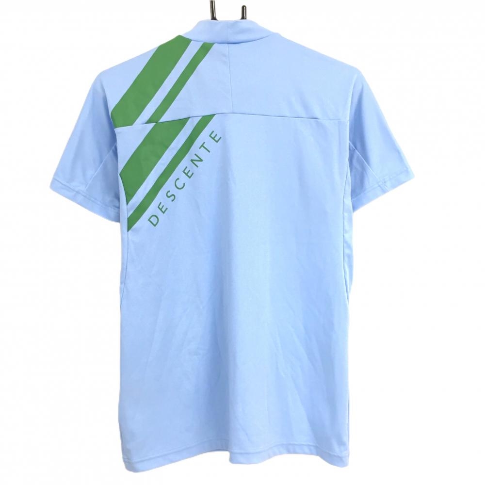【超美品】デサントゴルフ 半袖ハイネックシャツ ライトブルー×グリーン 肩ロゴ 背面プリント 中田英寿 メンズ M ゴルフウェア DESCENTE