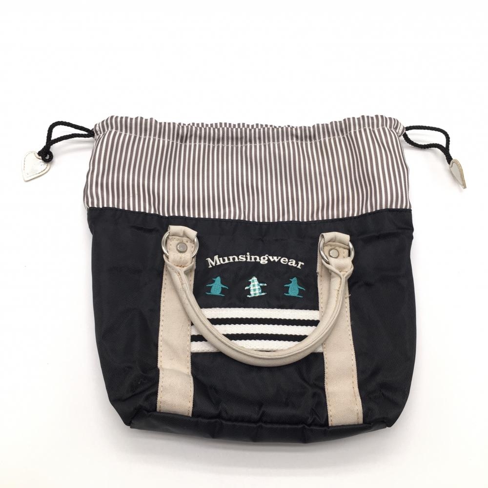 マンシングウェア カートバッグ 黒×ベージュ ペンギン刺しゅう 内ポケット ゴルフ Munsingwear