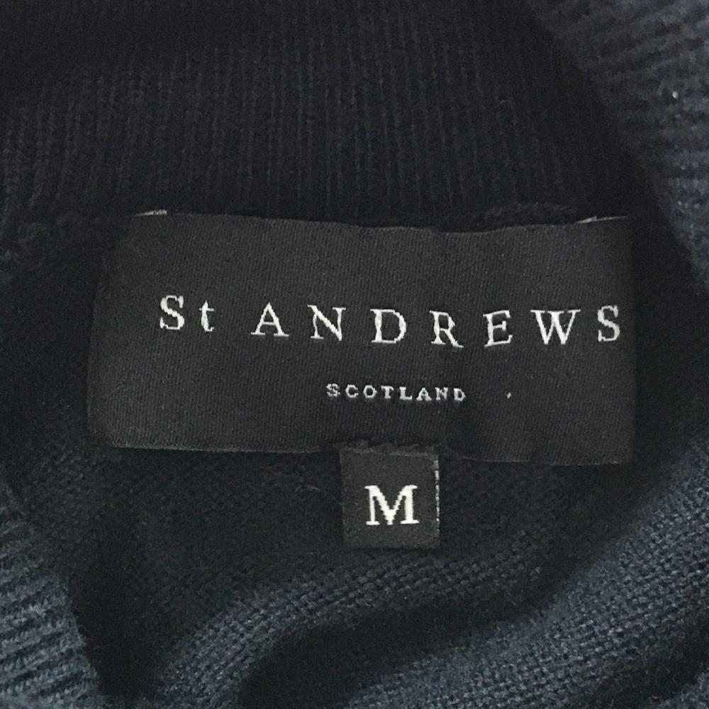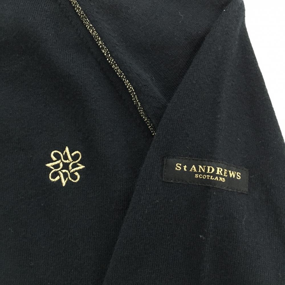 セントアンドリュース セーター 黒×ゴールド ロゴ刺しゅう コットン混 ニット レディース M ゴルフウェア St ANDREWS