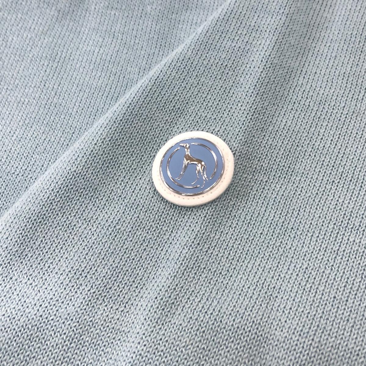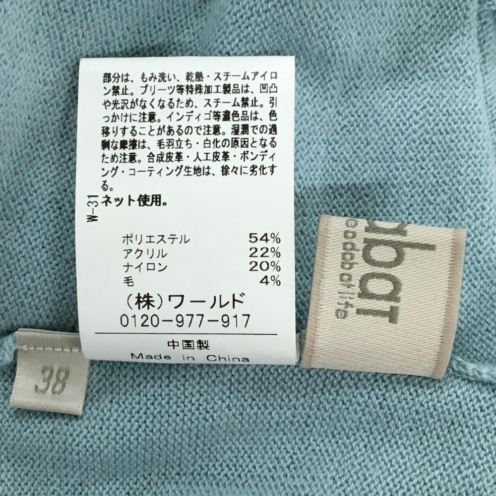 【美品】アダバット タートルネックセーター ライトブルー 胸ロゴラインストーン ウール混 ニット レディース 38(M) ゴルフウェア adabat