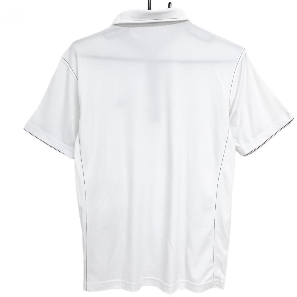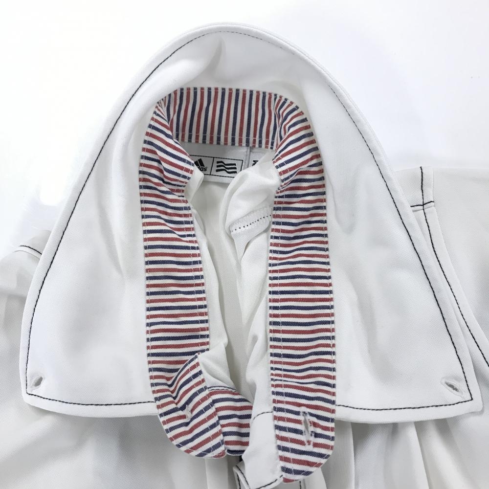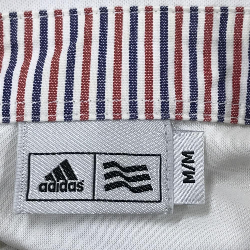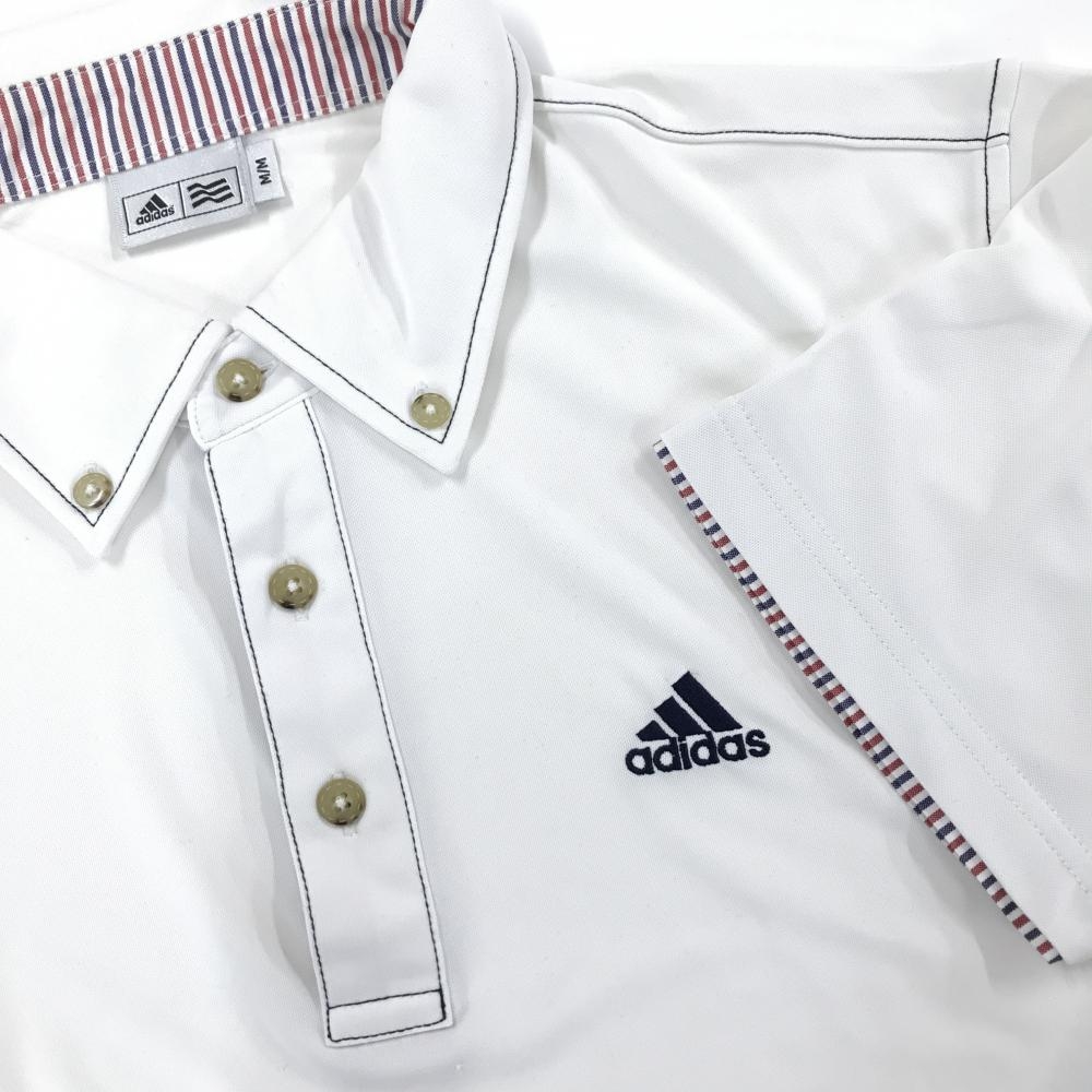 アディダス 半袖ポロシャツ 白×ネイビー 胸ロゴ ボタンダウン メンズ M/M ゴルフウェア adidas