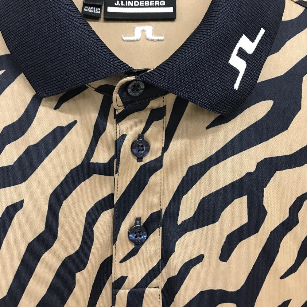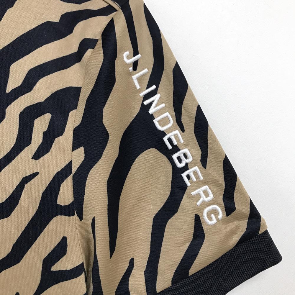【超美品】ジェイリンドバーグ 半袖ポロシャツ ブラウン×黒 ゼブラ柄 メンズ XS ゴルフウェア J.LINDEBERG