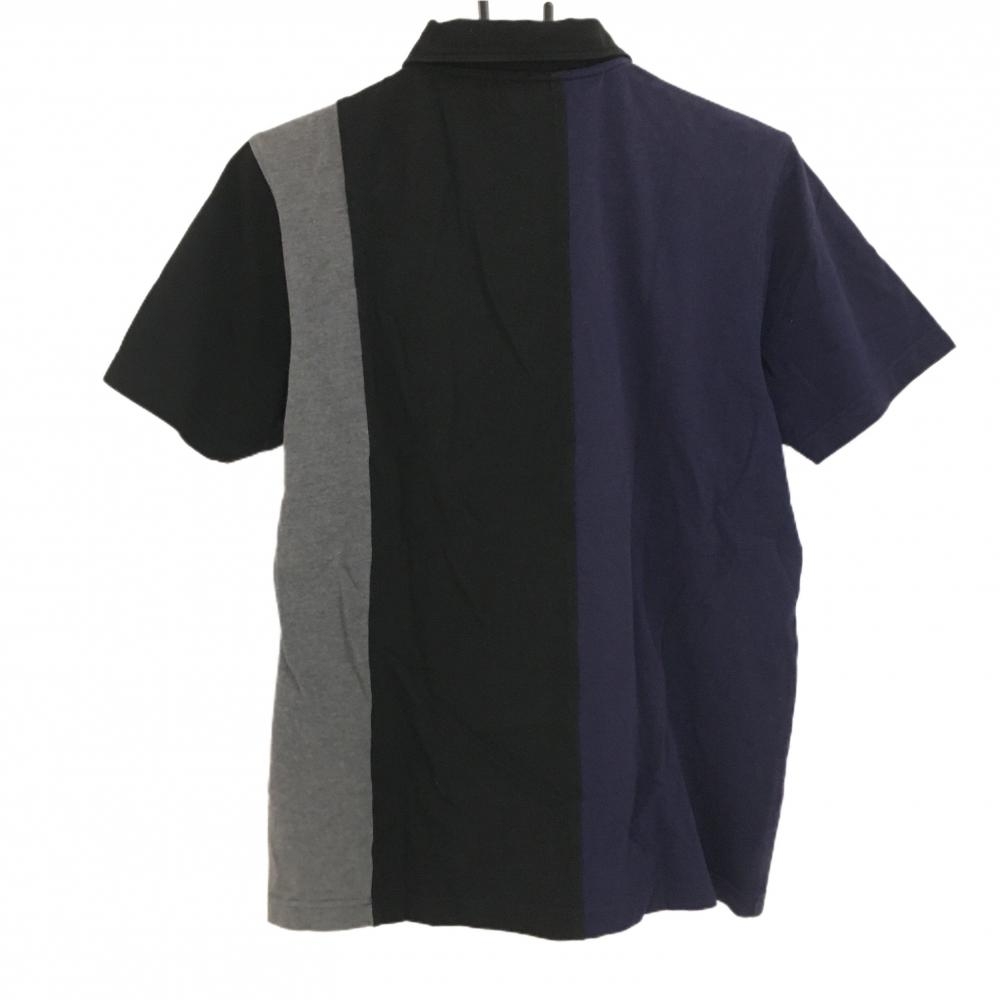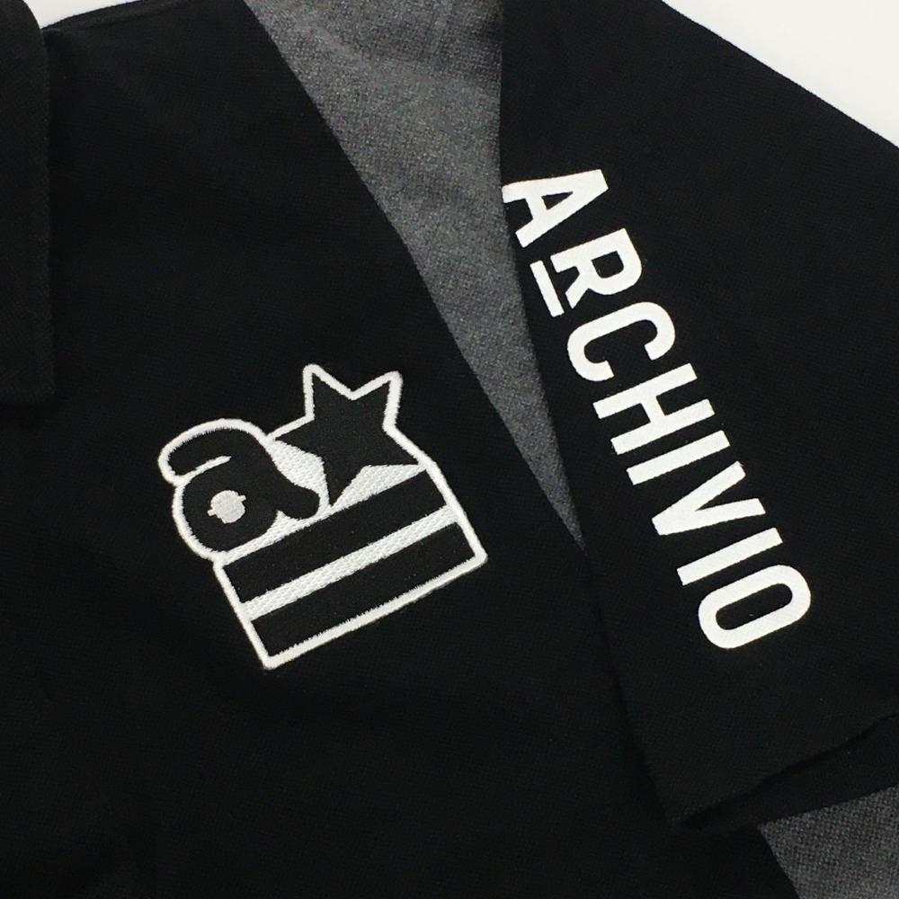 アルチビオ 半袖ポロシャツ 黒×ネイビー 切替 ワッペン メンズ 46(M) ゴルフウェア archivio