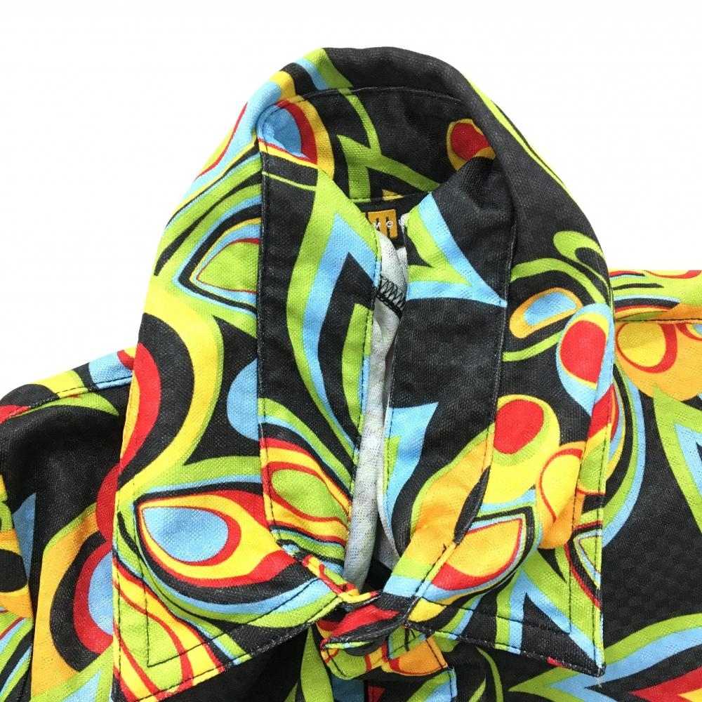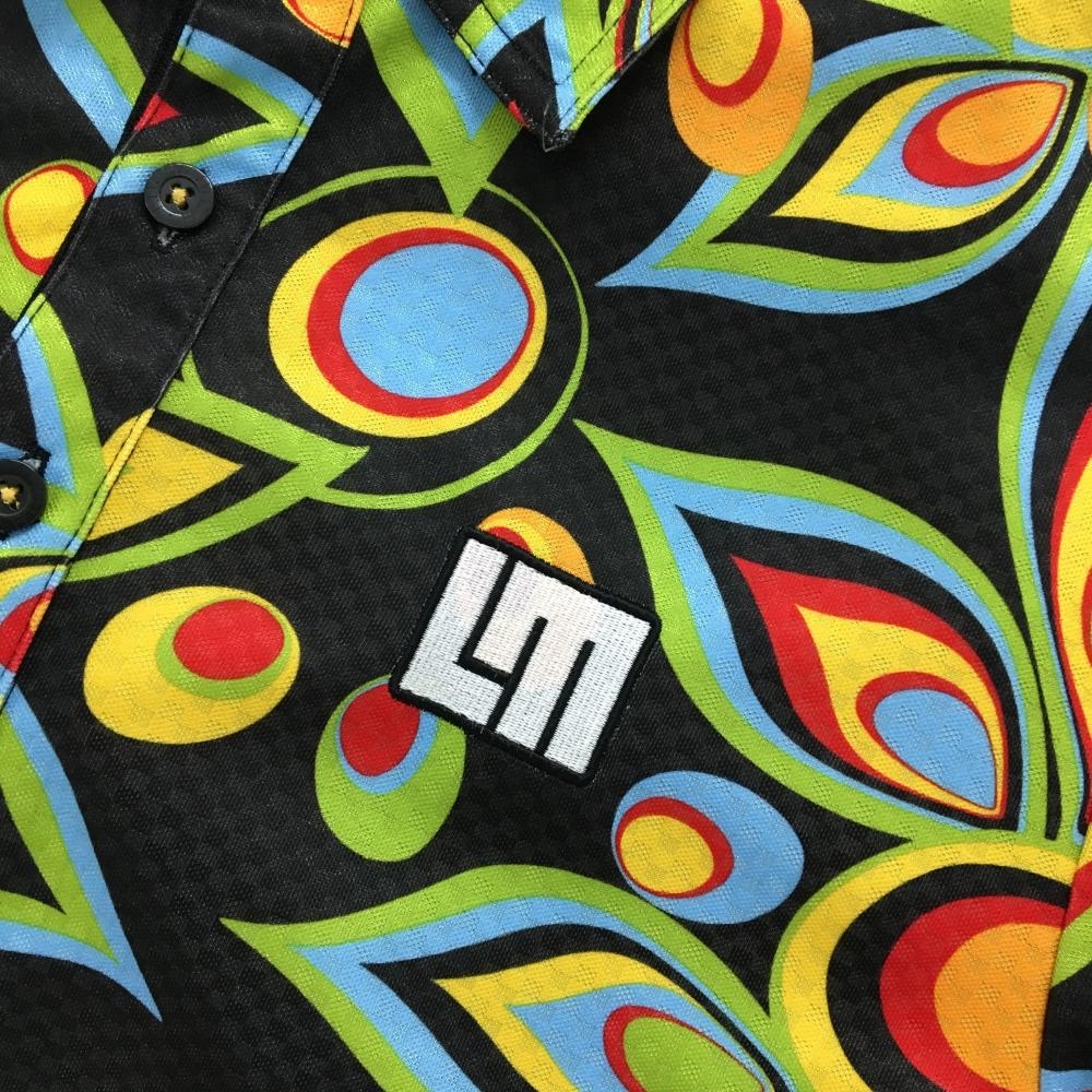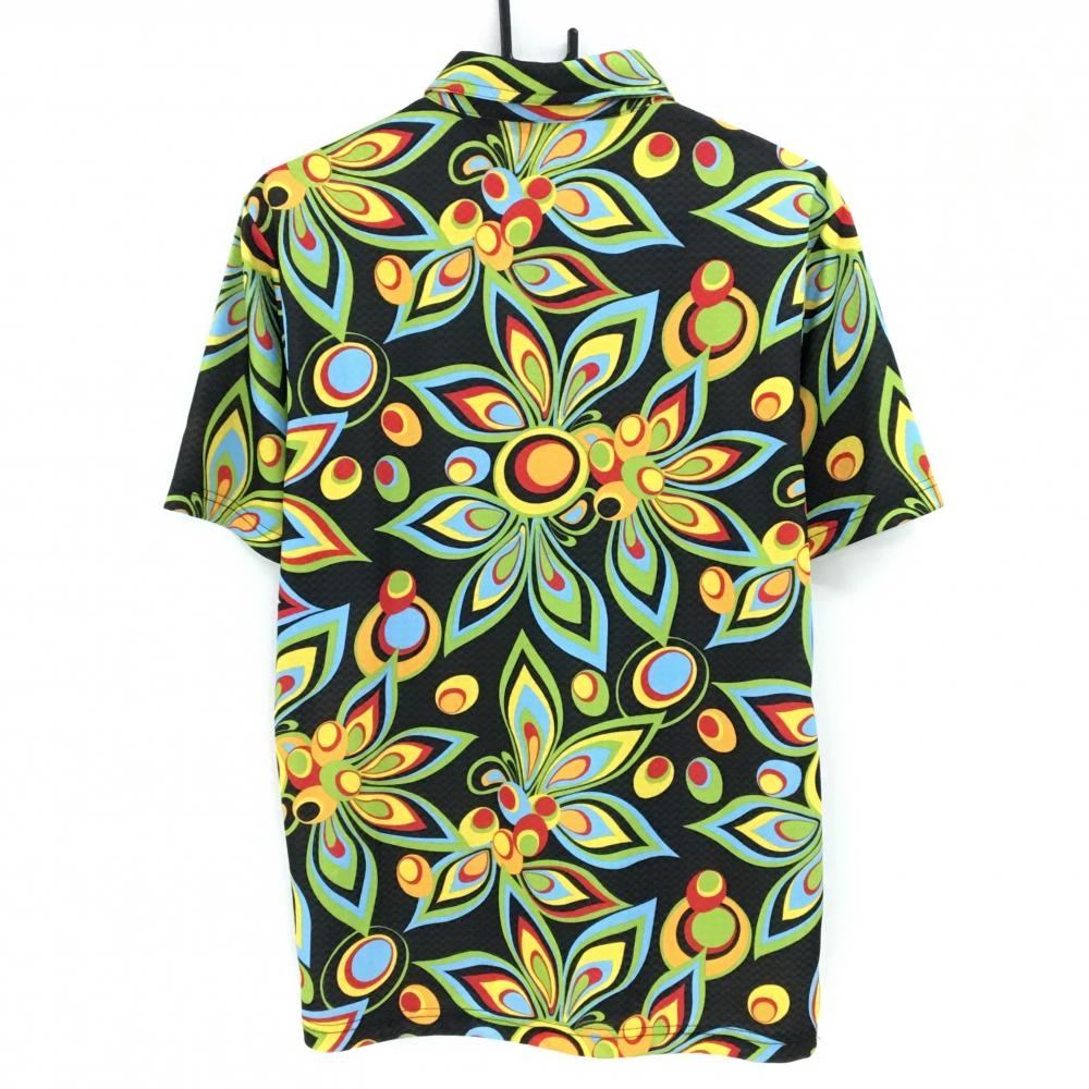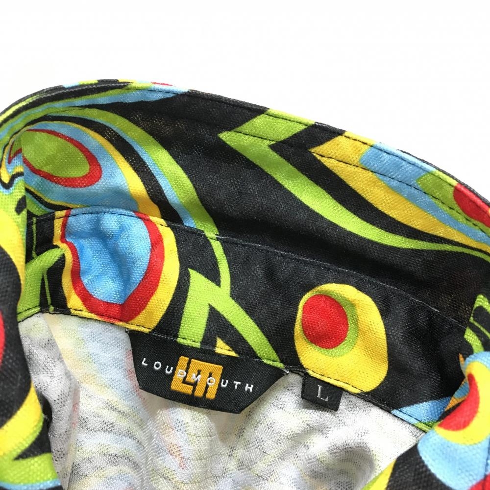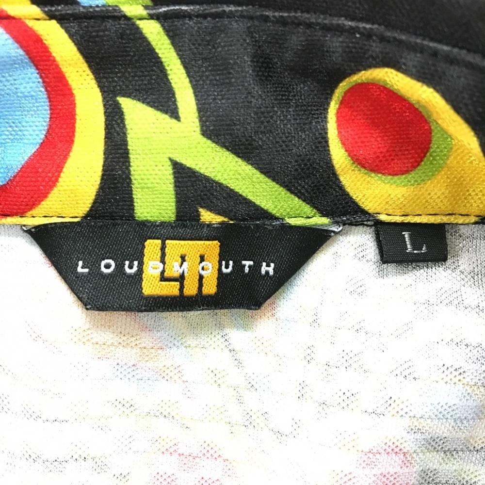 【美品】ラウドマウス 半袖ポロシャツ 黒×マルチカラー 総柄 シャガデリックブラック ロゴ刺しゅう メンズ L ゴルフウェア LOUDMOUTH