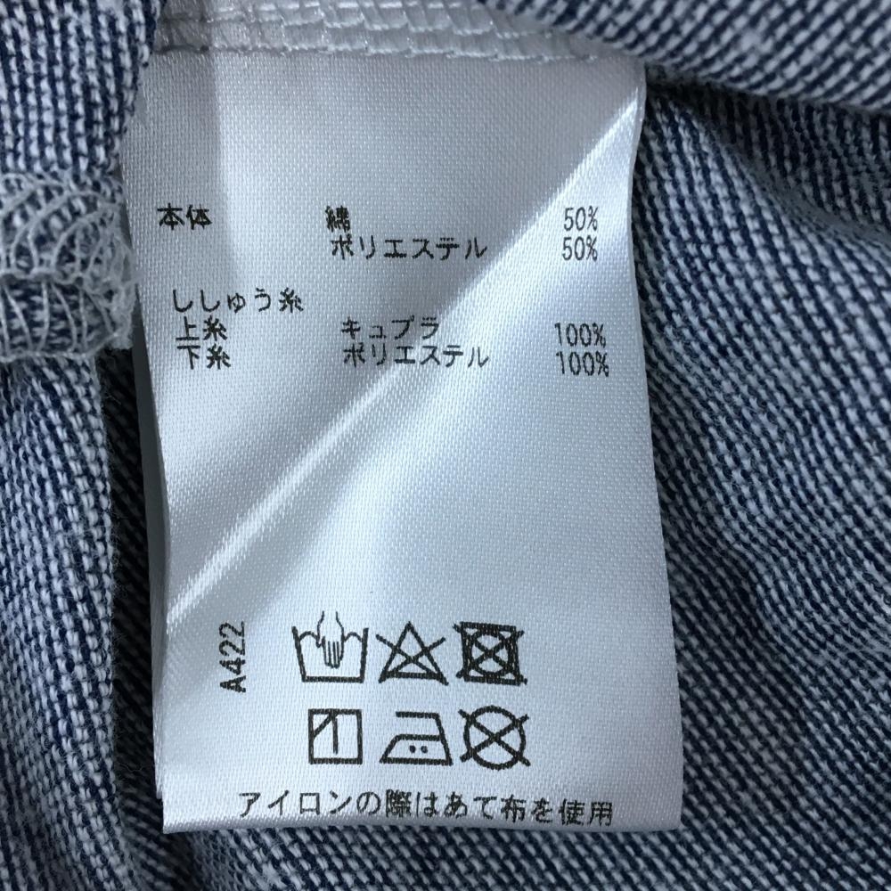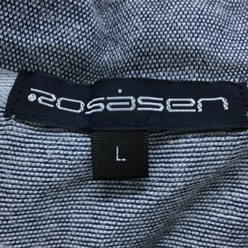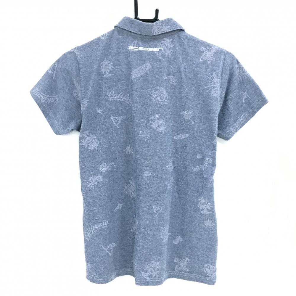 ロサーセン 半袖ポロシャツ ネイビーグレー系 総柄 胸ロゴ刺しゅう 毛羽立ち レディース L ゴルフウェア Rosasen