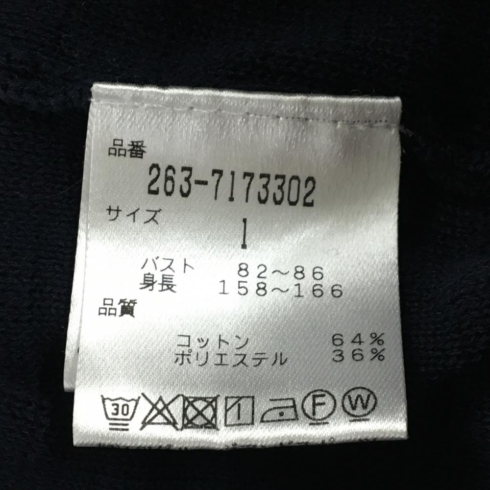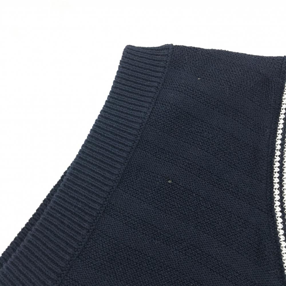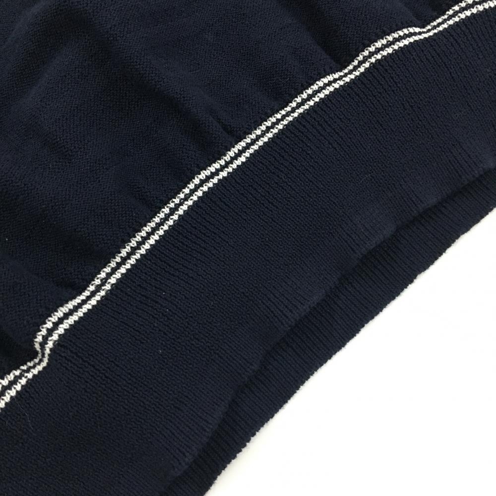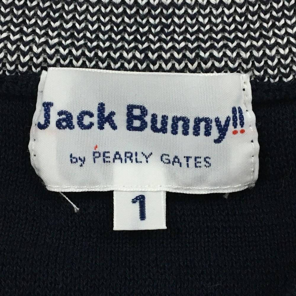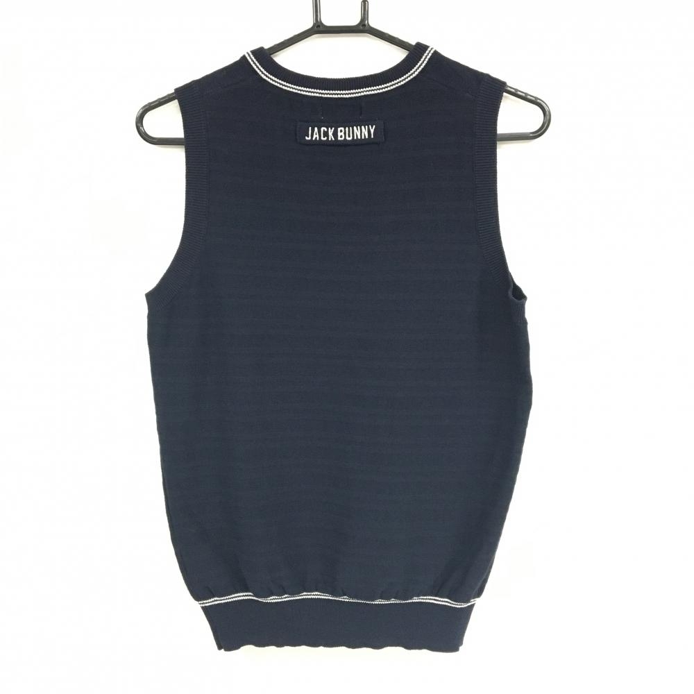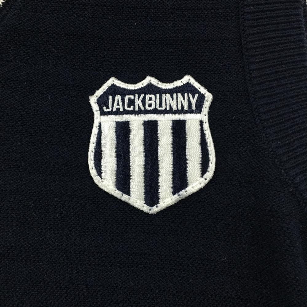 【美品】ジャックバニー ニットベスト ネイビー ボーダー 胸ロゴ Vネック レディース 1(M) ゴルフウェア Jack Bunny