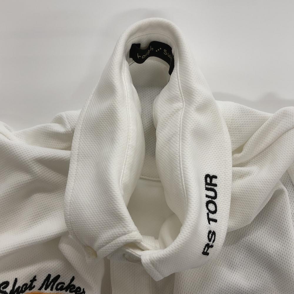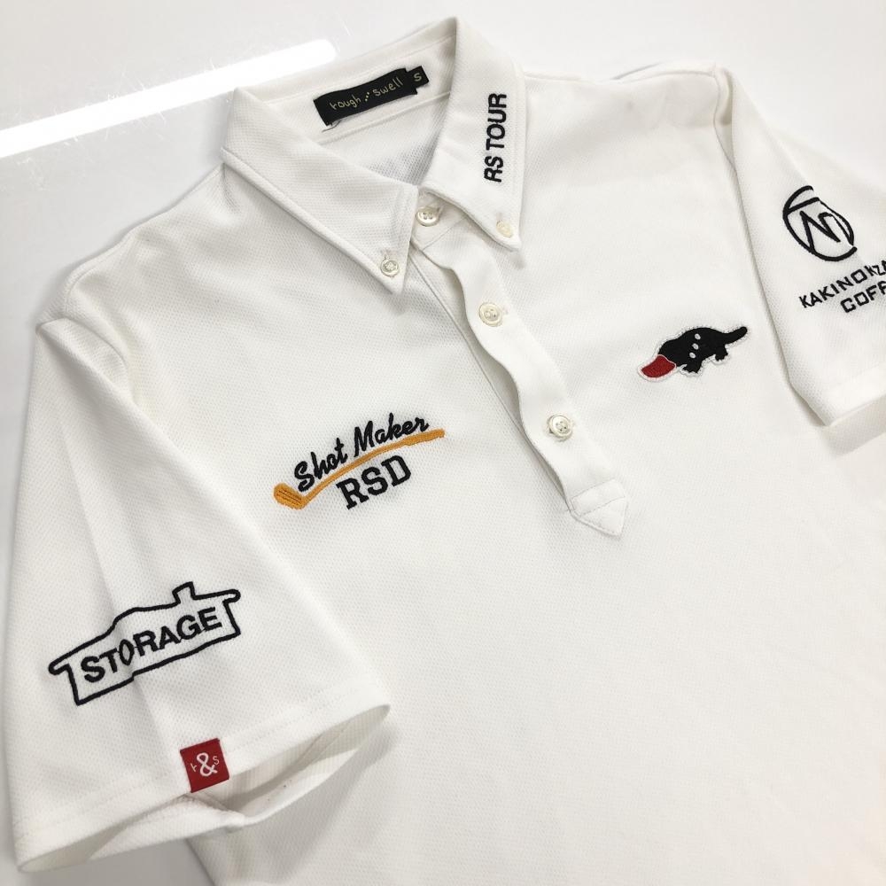 ラフアンドスウェル 半袖ポロシャツ 白×黒 柿の木坂コーヒー ボタンダウン メンズ S ゴルフウェア rough&swell