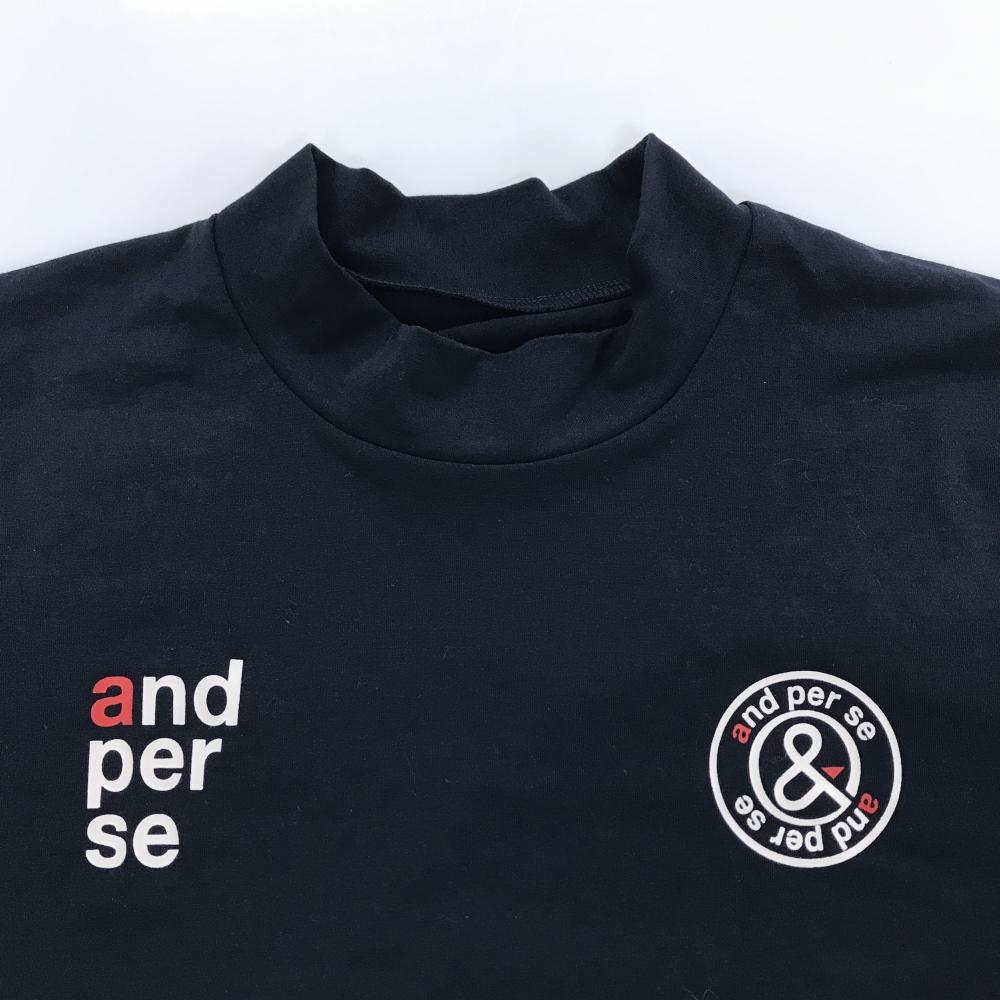 アンパスィ 半袖ハイネックシャツ ネイビー ロゴ白 メンズ M ゴルフウェア and per se