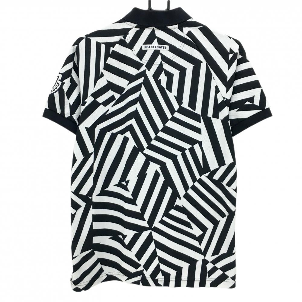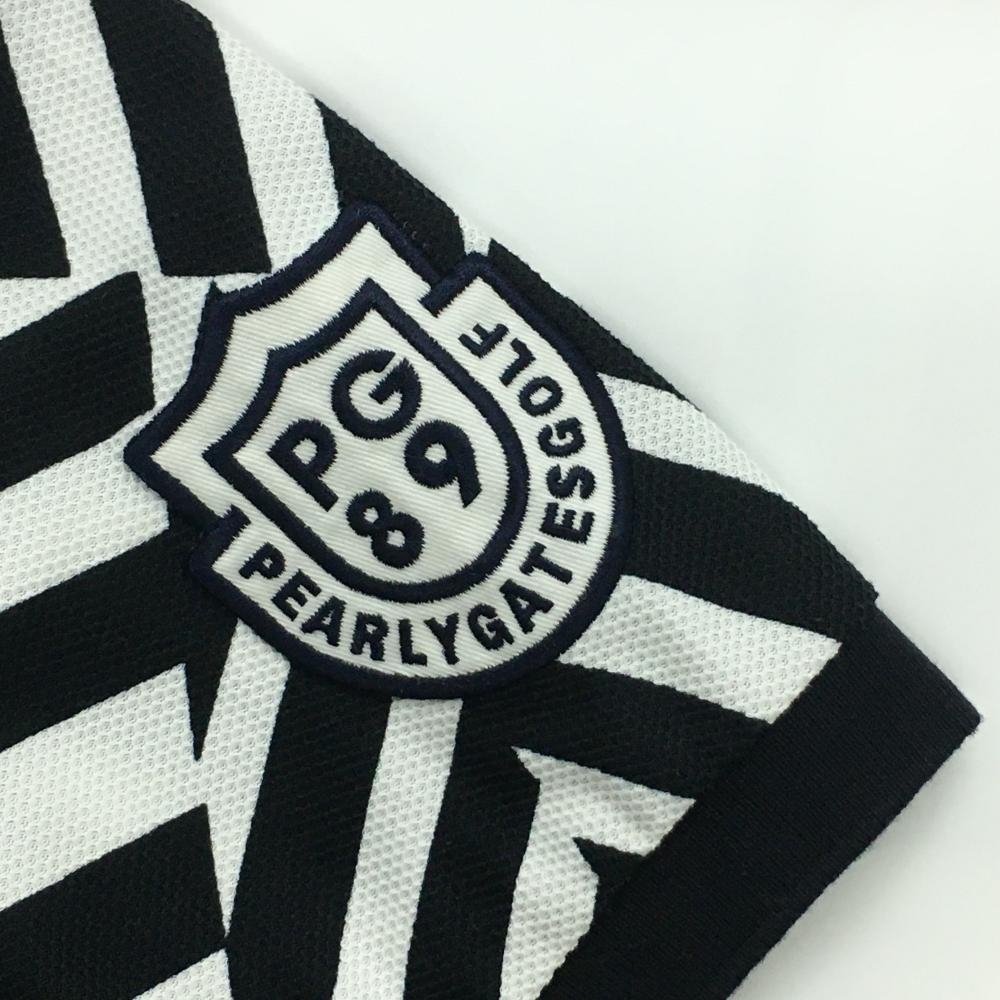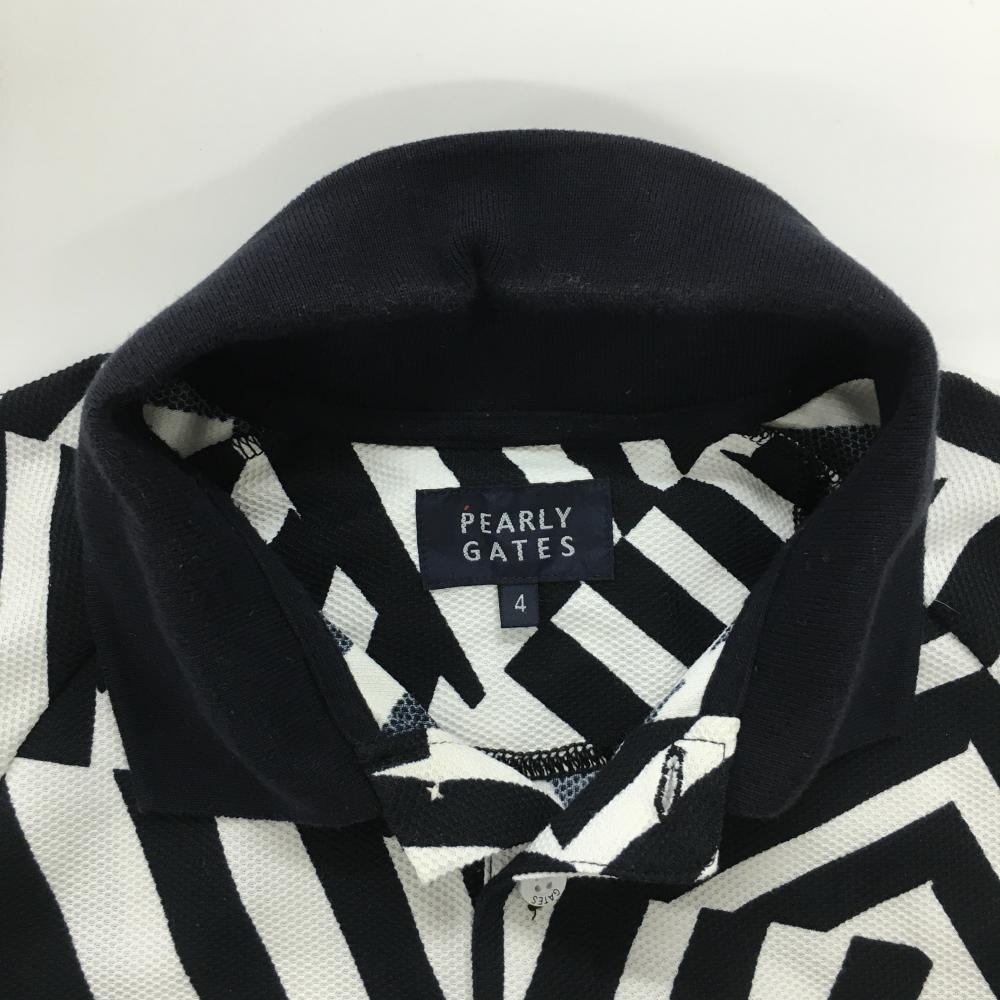 パーリーゲイツ 半袖ポロシャツ ネイビー×白 総柄 メンズ 4(M) ゴルフウェア PEARLY GATES