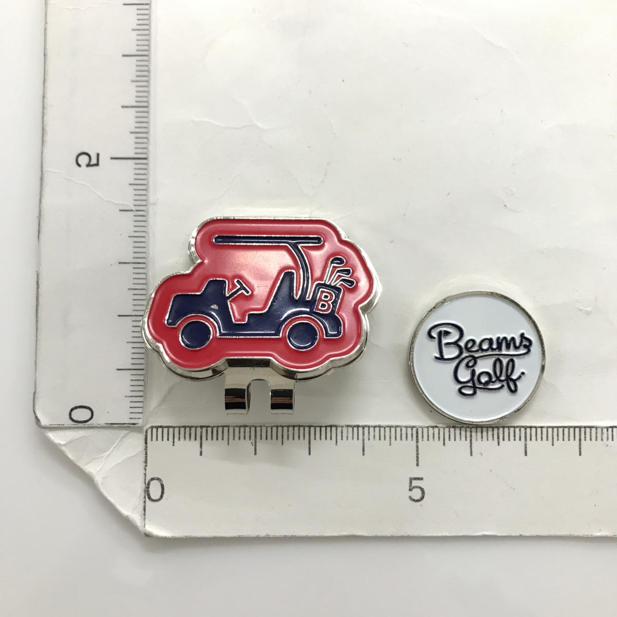 【美品】ビームスゴルフ マグネット式クリップマーカー 白×レッド ロゴ カート ゴルフ BEAMS GOLF