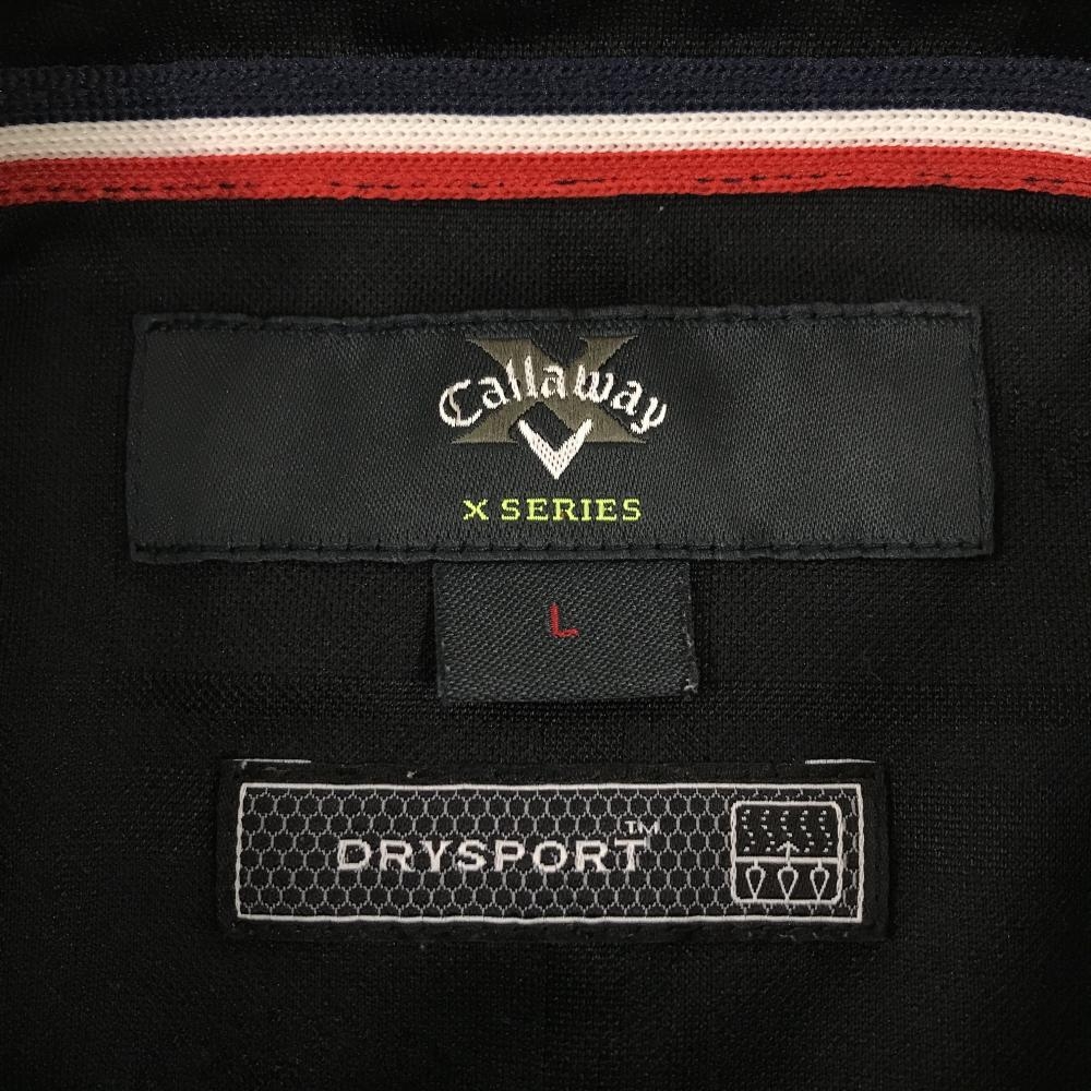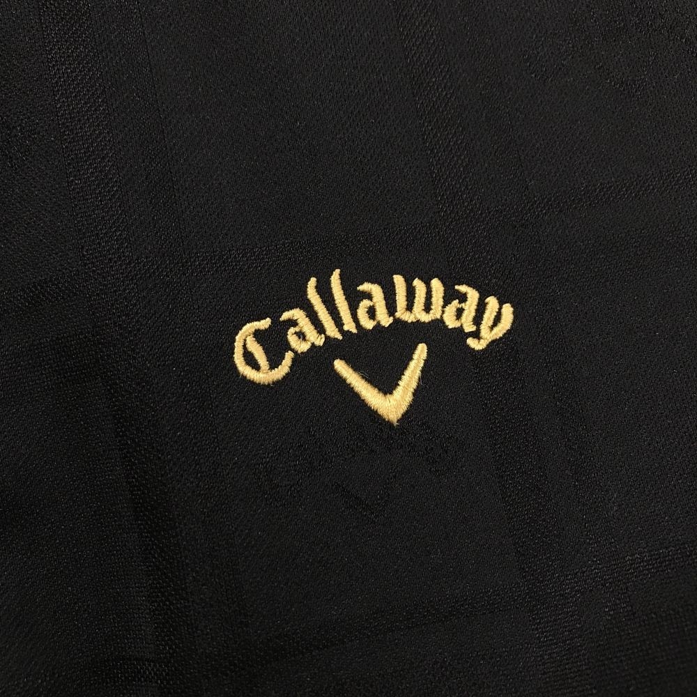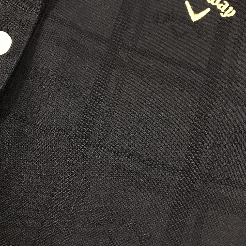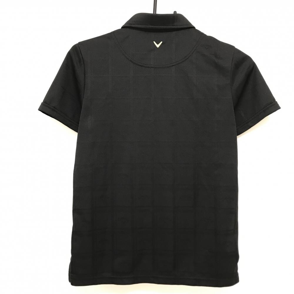 【超美品】キャロウェイ 半袖ポロシャツ 黒 ロゴ・格子柄地模様 ロゴ刺しゅう レディース L ゴルフウェア Callaway