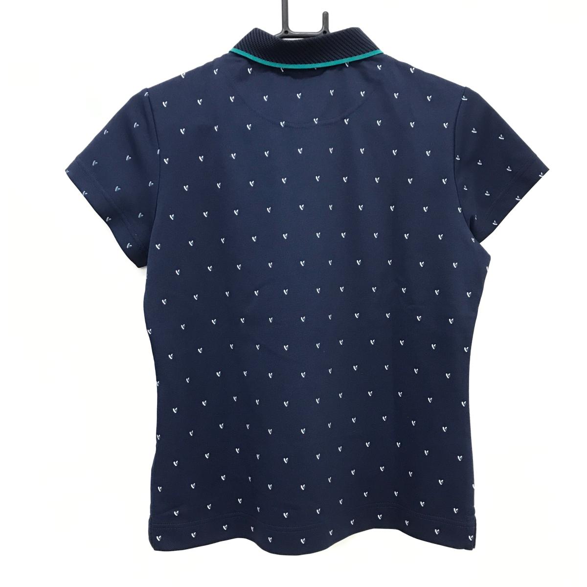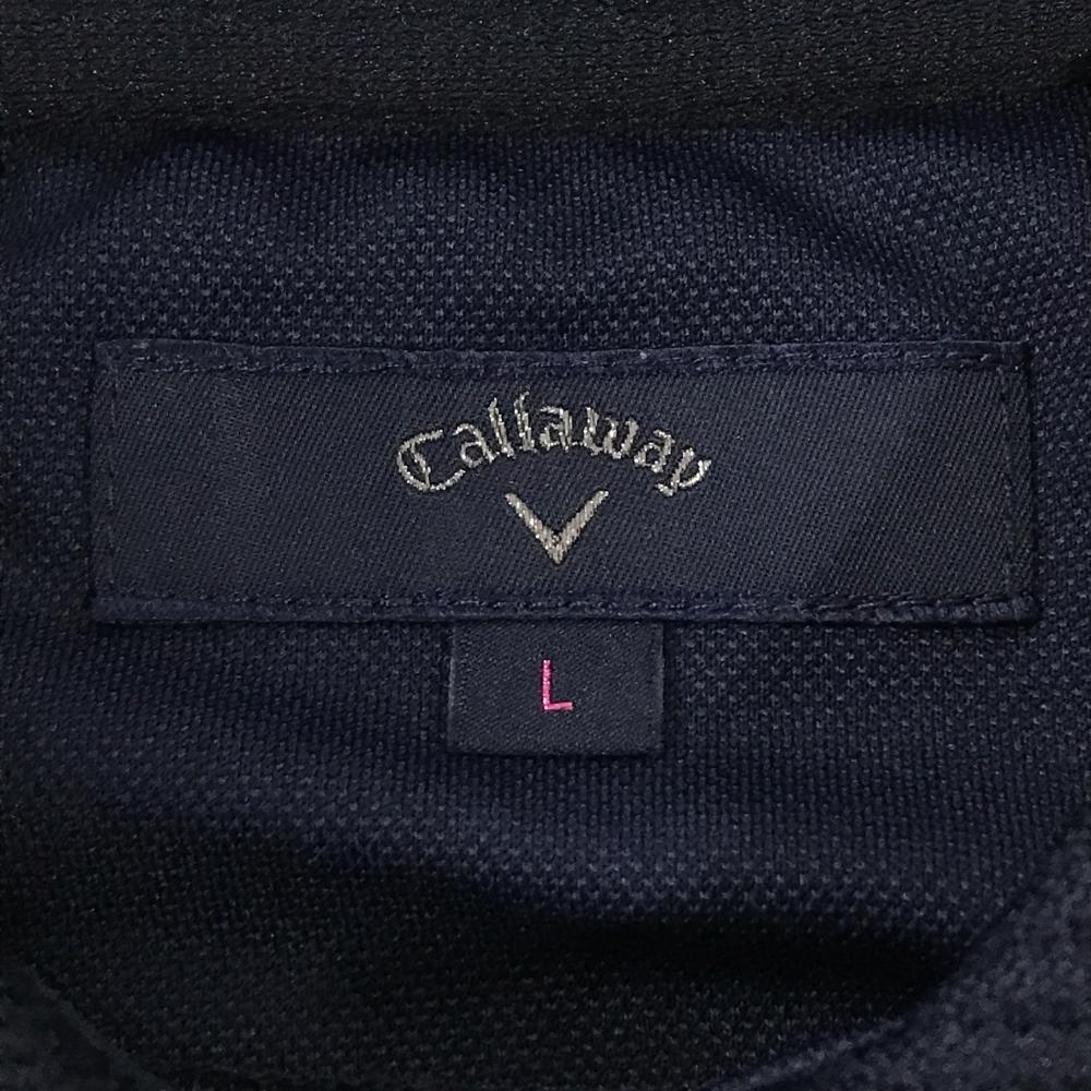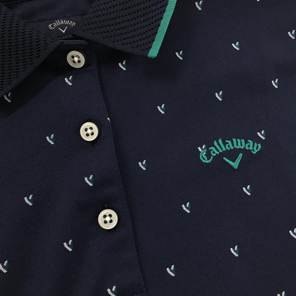 【美品】キャロウェイ 半袖ポロシャツ ネイビー×グリーン ロゴ総柄 襟ニット レディース L ゴルフウェア Callaway