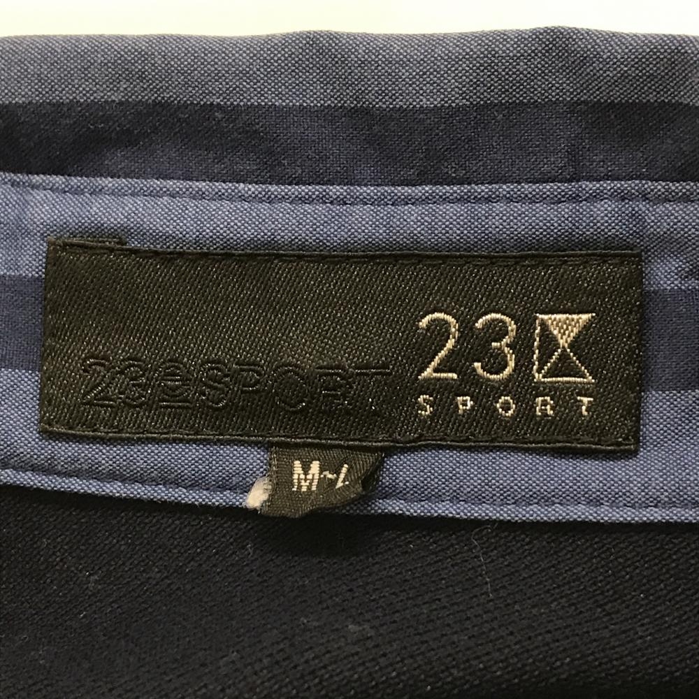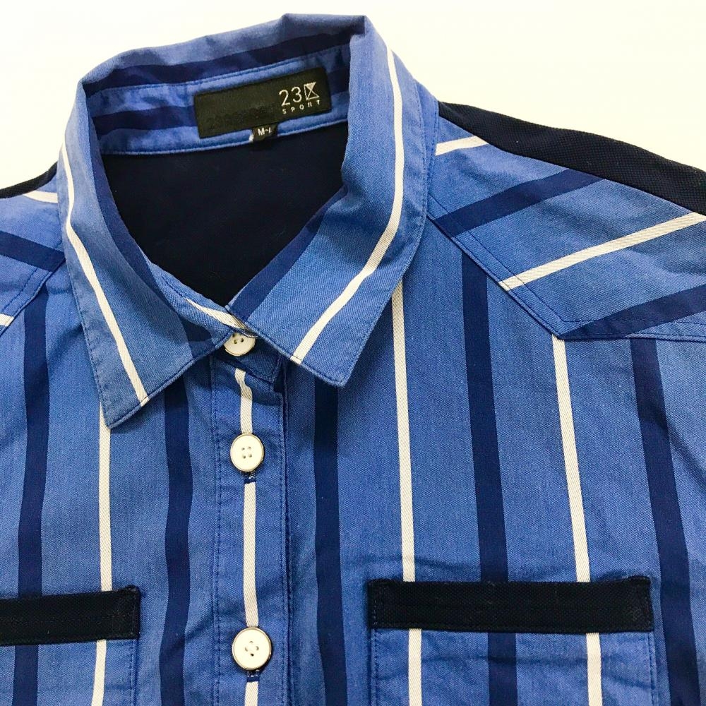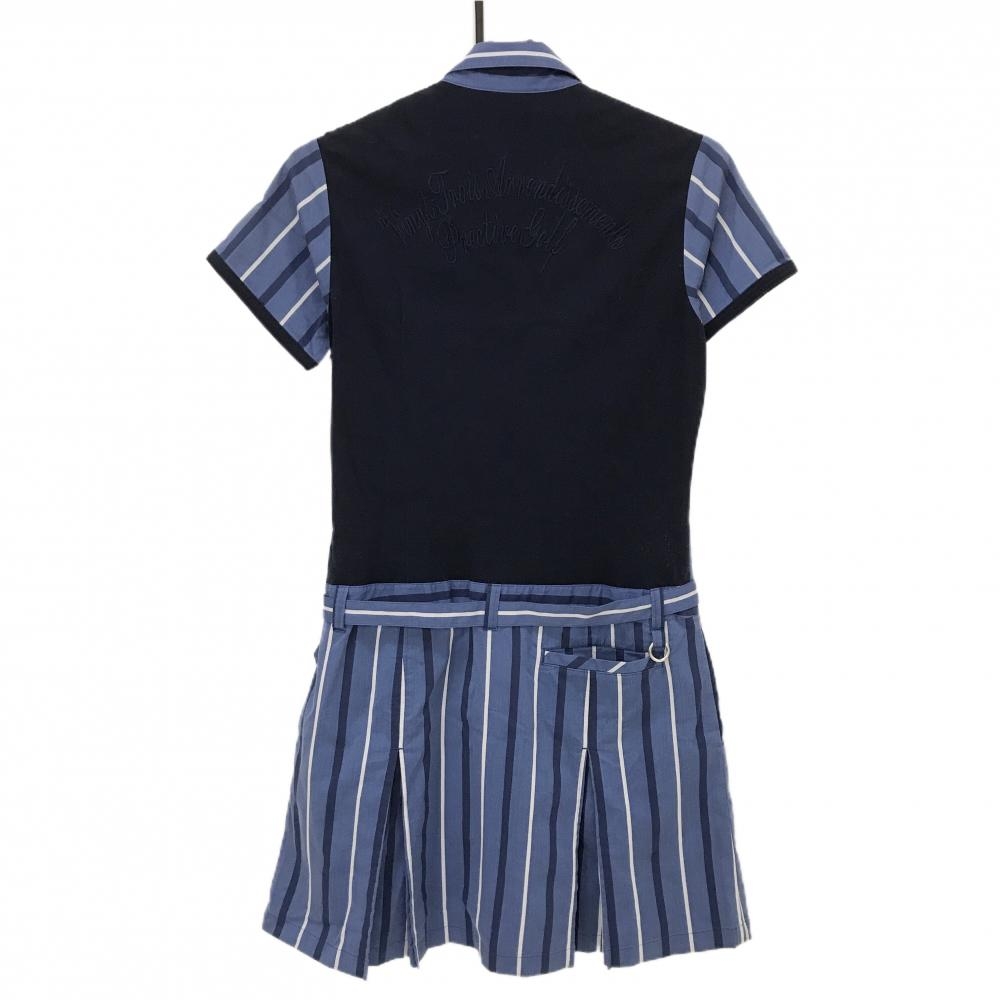 23区スポーツ 半袖ポロワンピース ブルー系×ネイビー×白 ストライプ 切替 ベルト付 レディース M-L ゴルフウェア 23区