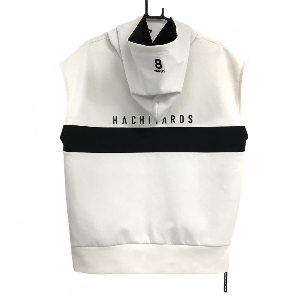 【超美品】ハチヤーズ フード付アウターベスト 白×黒 ダンボールニット バックロゴ メンズ XL ゴルフウェア 8YARDS