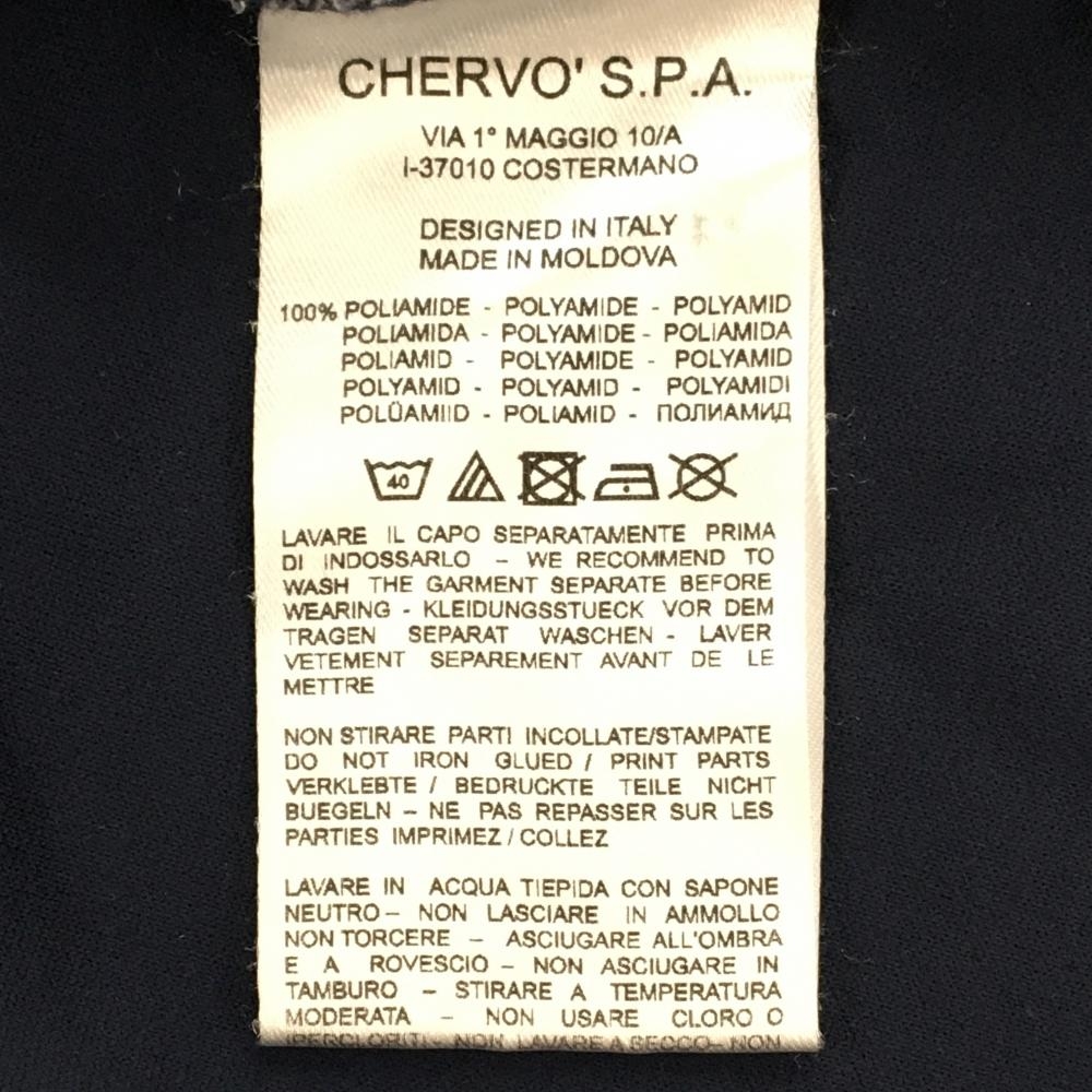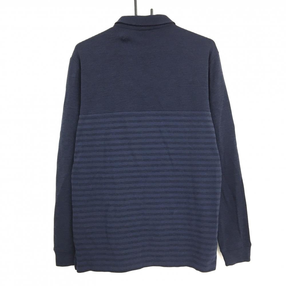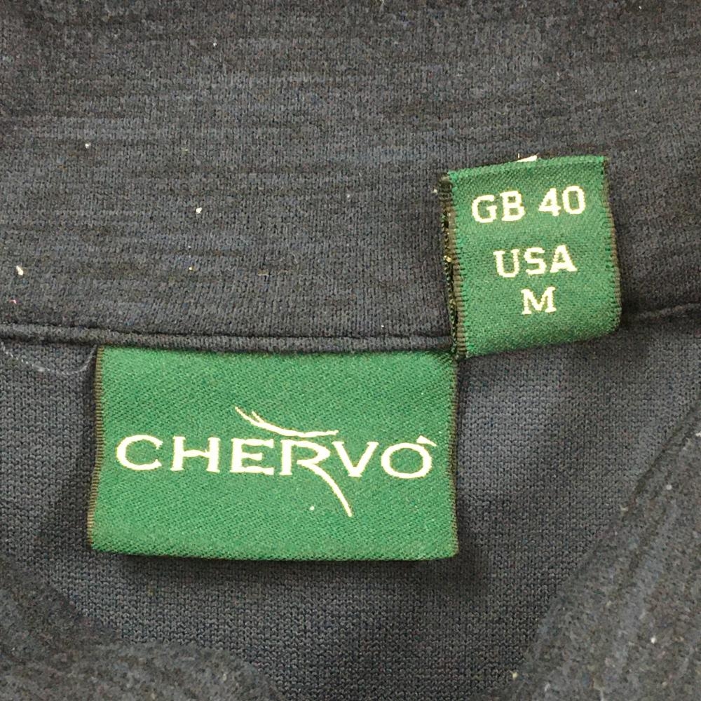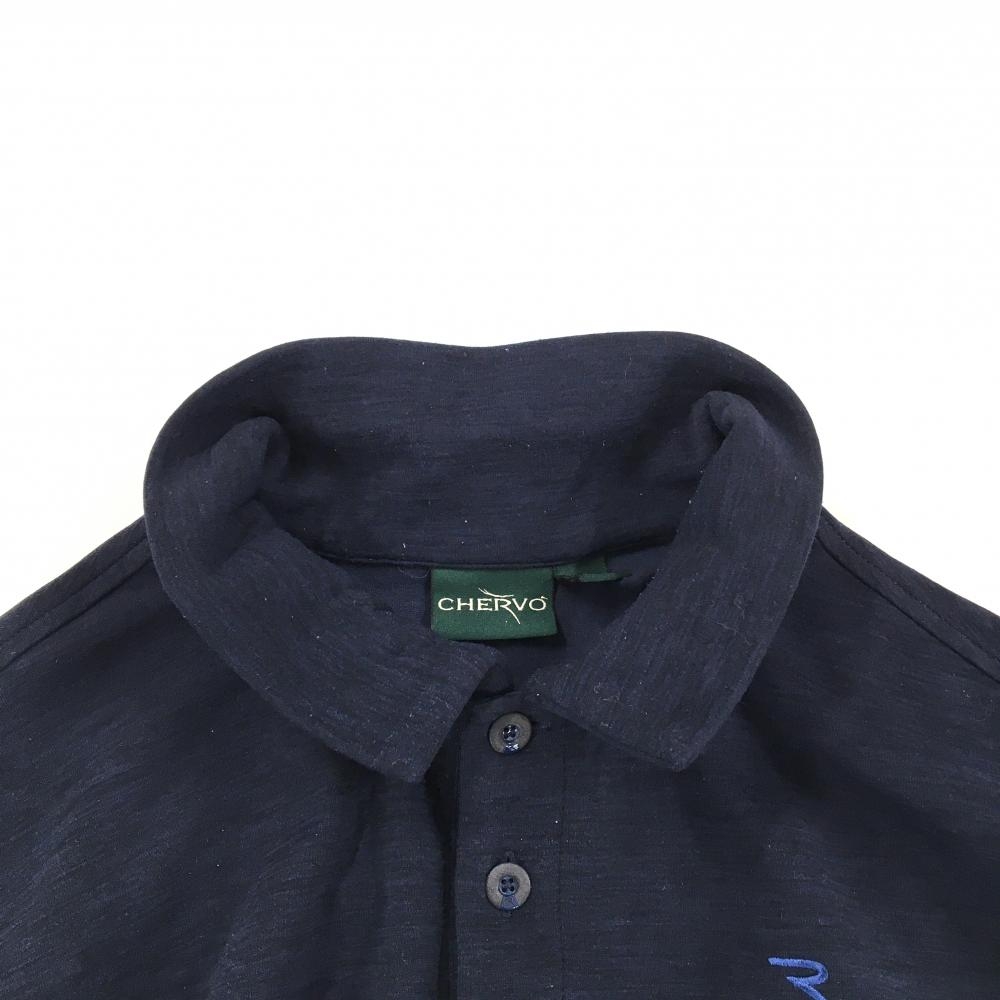 【美品】シェルボ 長袖ポロシャツ ネイビー 身頃ボーダー ロゴ刺しゅう メンズ USA-M ゴルフウェア CHERVO