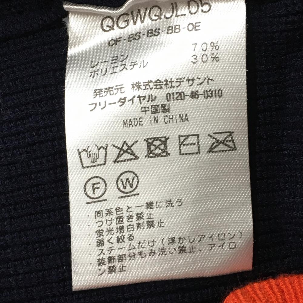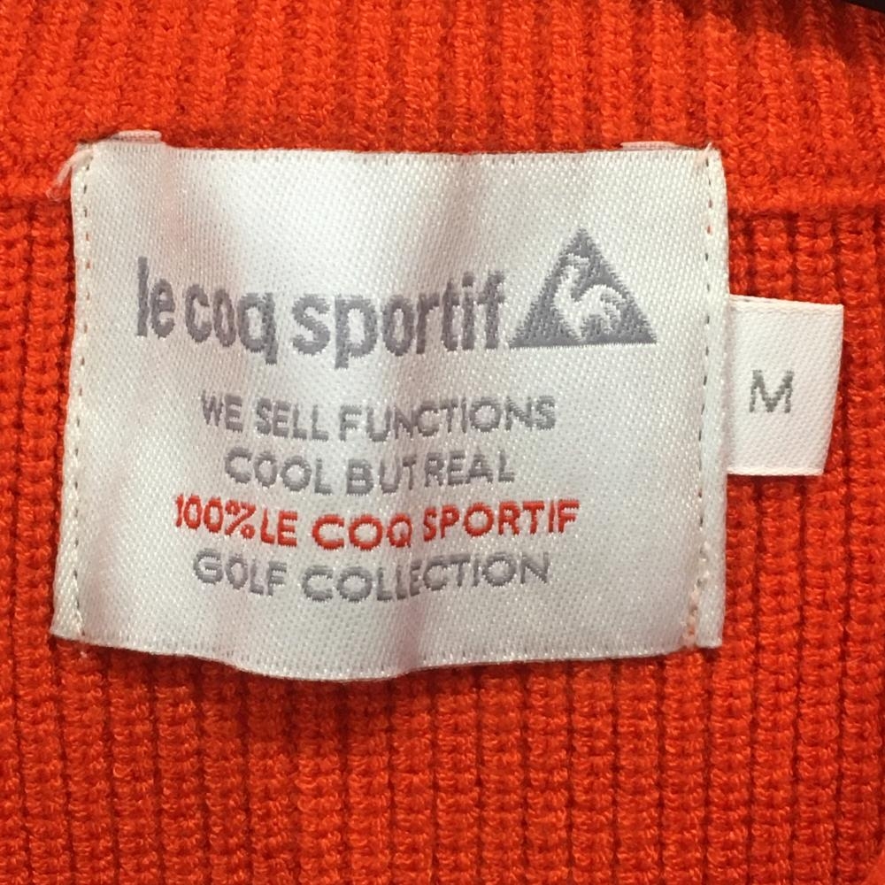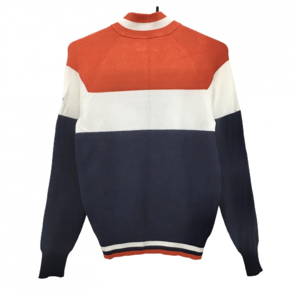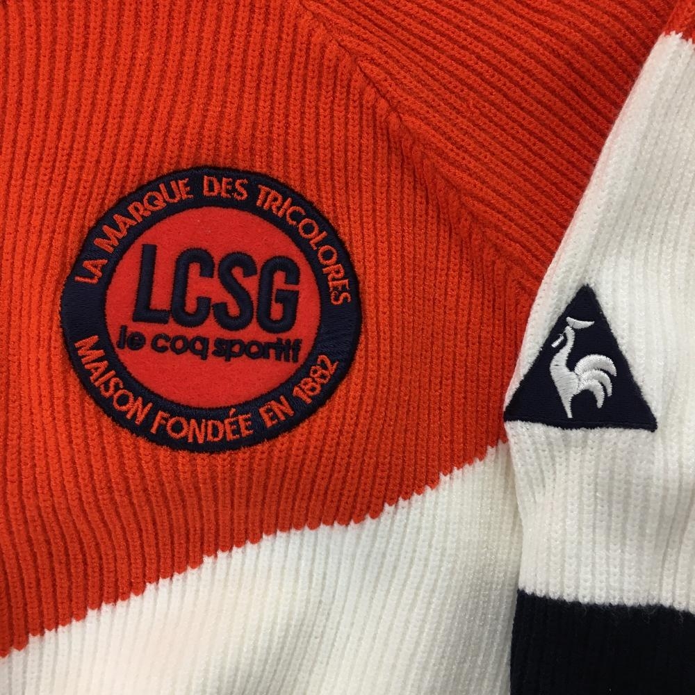 【超美品】ルコックゴルフ ニットジャケット オレンジ×ネイビー×白 リブ編み ブルゾン レディース M ゴルフウェア le coq sportif