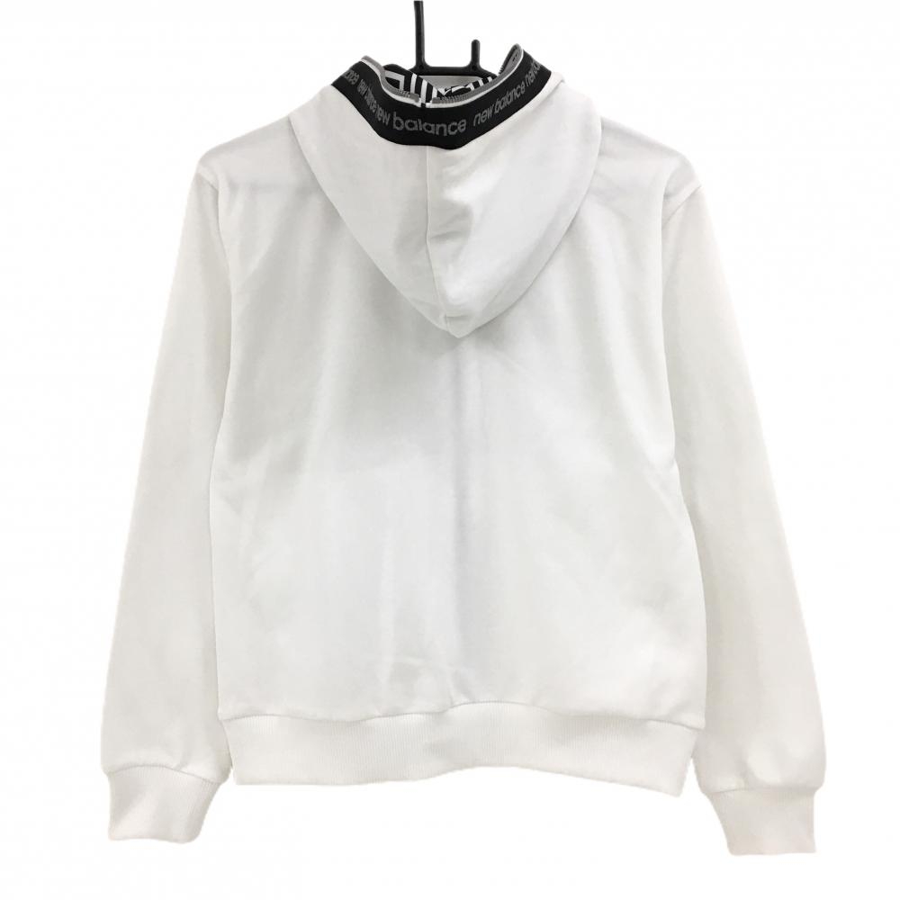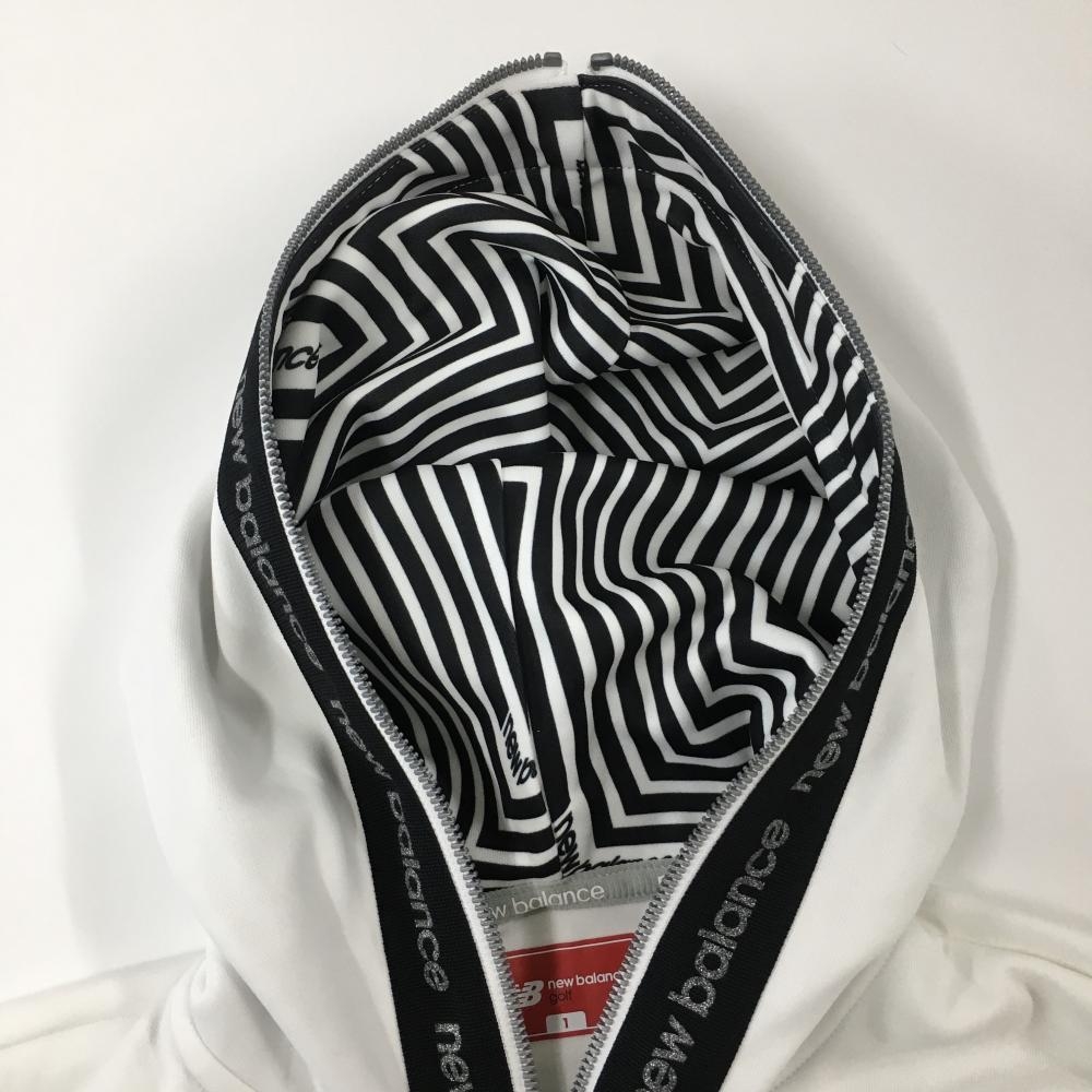 【超美品】ニューバランス ジップパーカー 白×黒 ダブルジップ ジップサイドテープ ロゴラメ レディース 1(M) ゴルフウェア New Balance