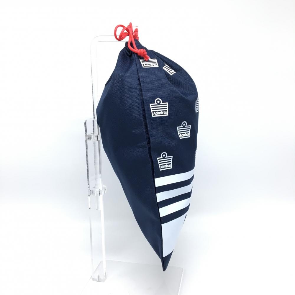 【超美品】アドミラル シューズケース ネイビー×白 片面ロゴ総柄 巾着 ゴルフ Admiral